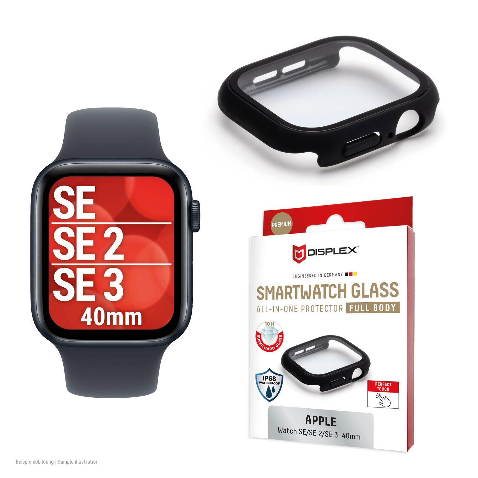 DISPLEX 10H Panzerglas Apple Watch SE3/SE2/SE (40mm) Full Body Schutz, IP68 Wasserdicht, matt-schwarz, Rundum Displayschutz, Snap-On Montage