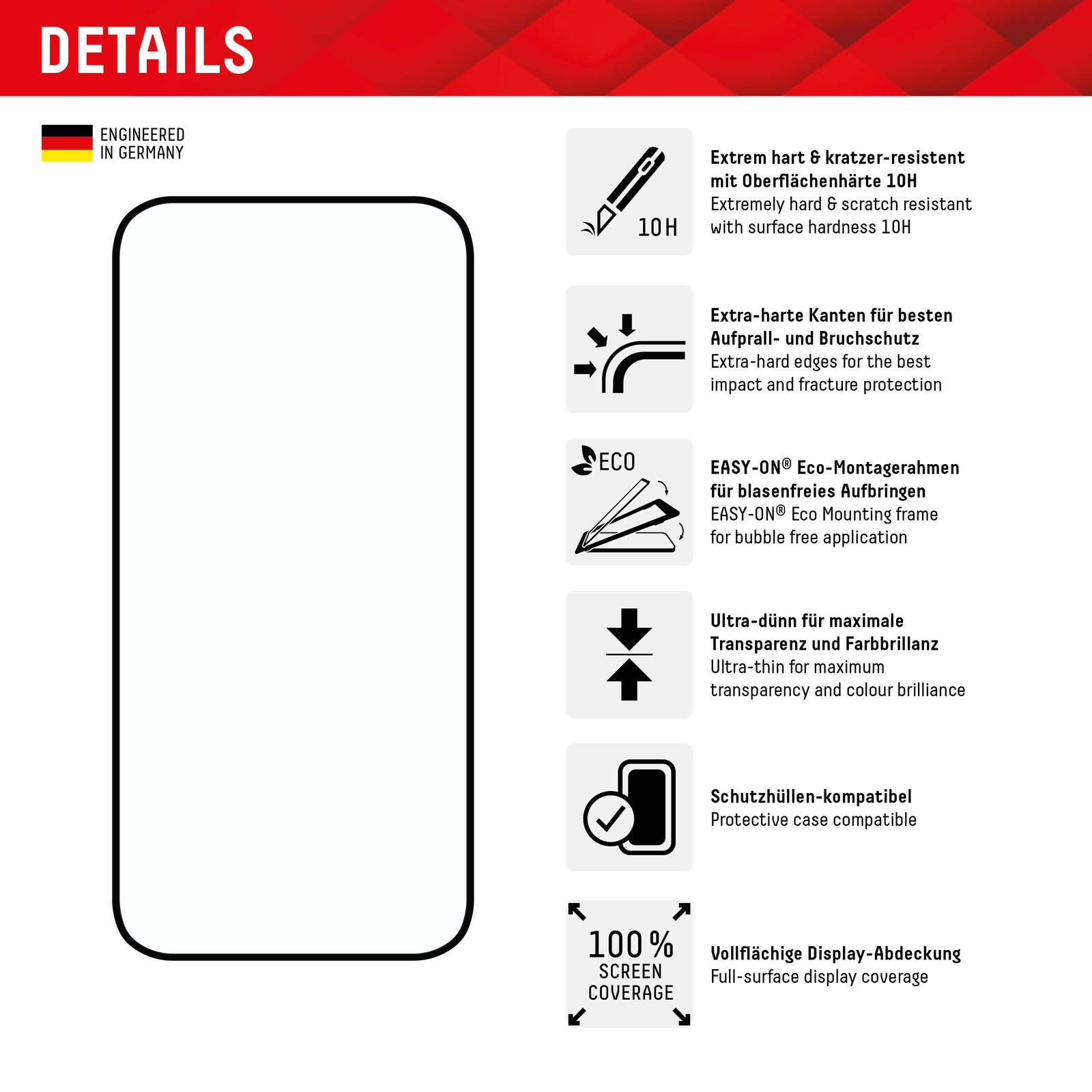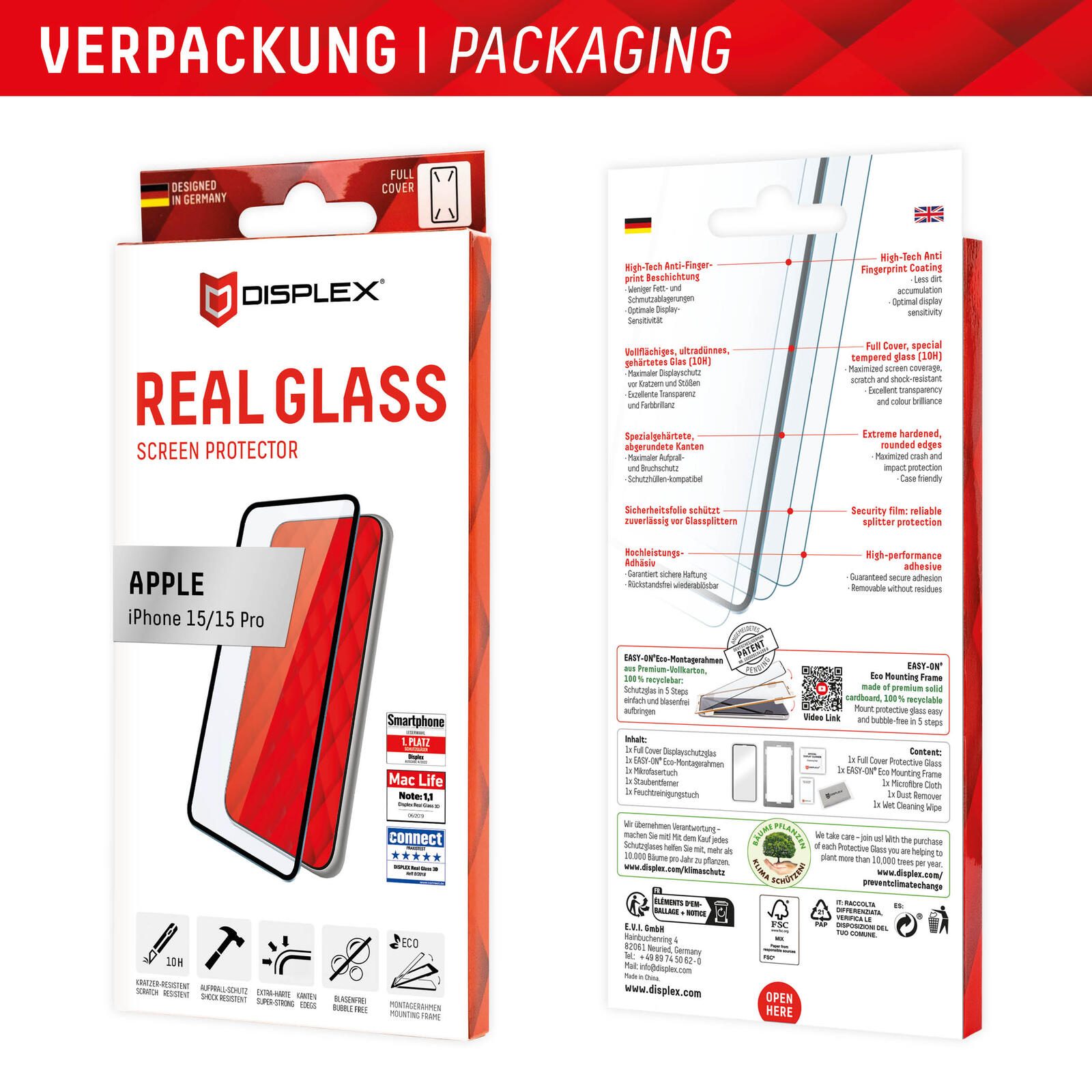 DISPLEX Panzerglas (10H) für Apple iPhone 15/15 Pro Eco-Montagerahmen, Full Cover