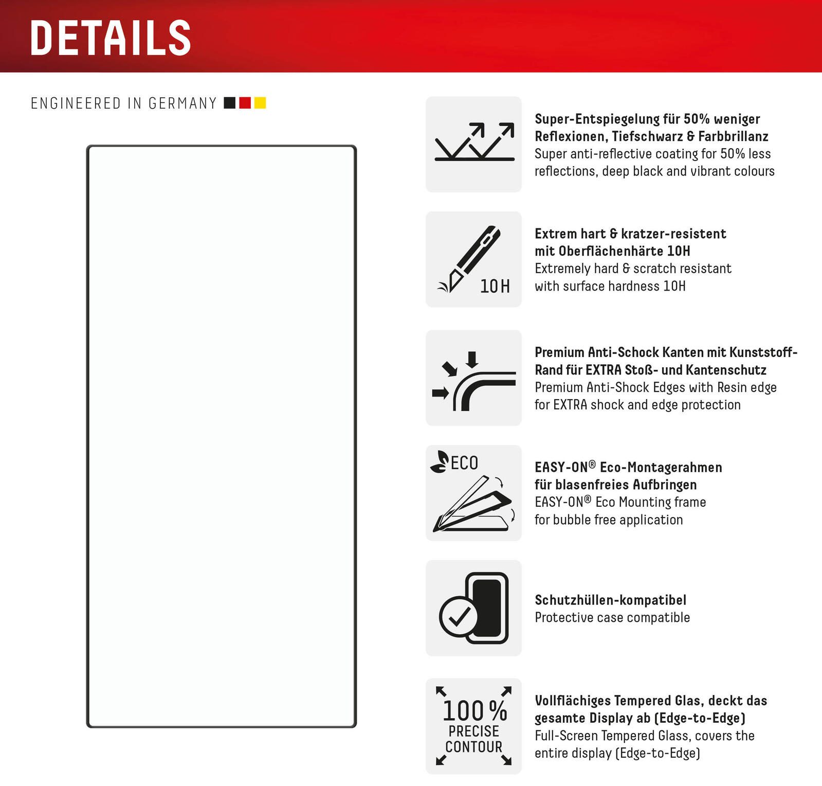 - Vollflächige Displayabdeckung: Extra Schutz rundum durch gesamte Displayabdeckung (Edge-to-Edge).
