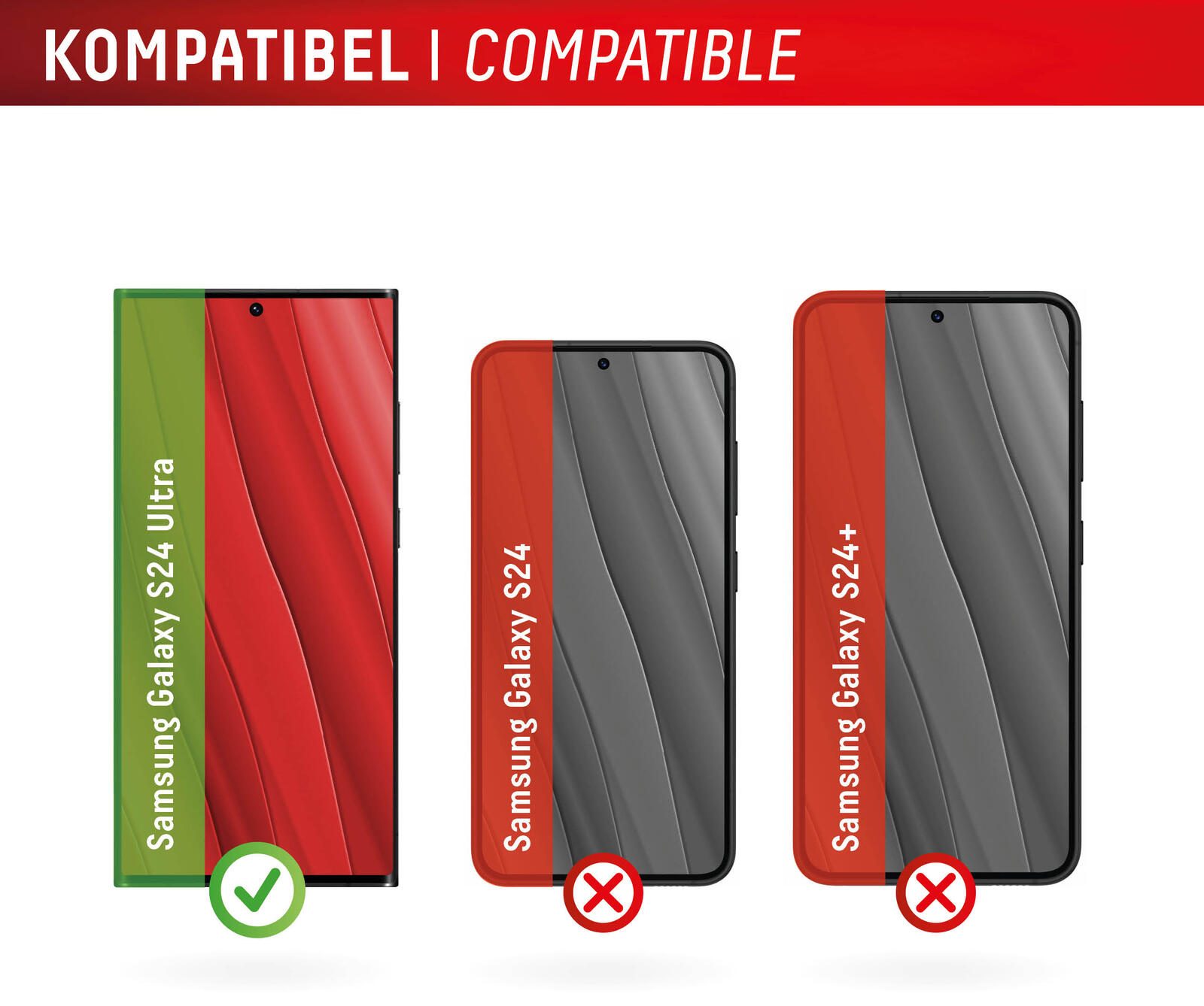 - Kontur und Öffnungen sind optimal abgestimmt auf das Galaxy S24 Ultra, 3D/ Haptic Touch bzw. Fingerprint-Sensoren werden unterstützt.