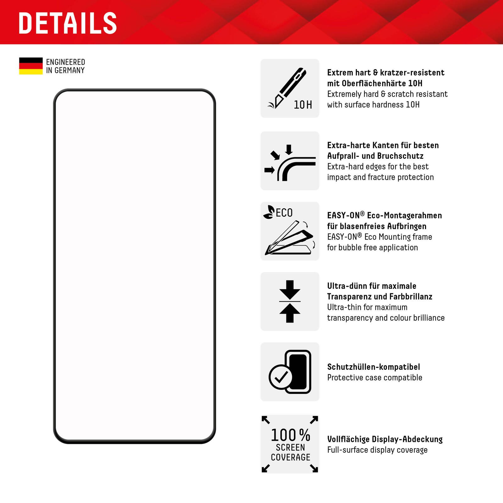 - Vollflächige Displayabdeckung: Extra Schutz rundum durch gesamte Displayabdeckung (Edge-to-Edge).
