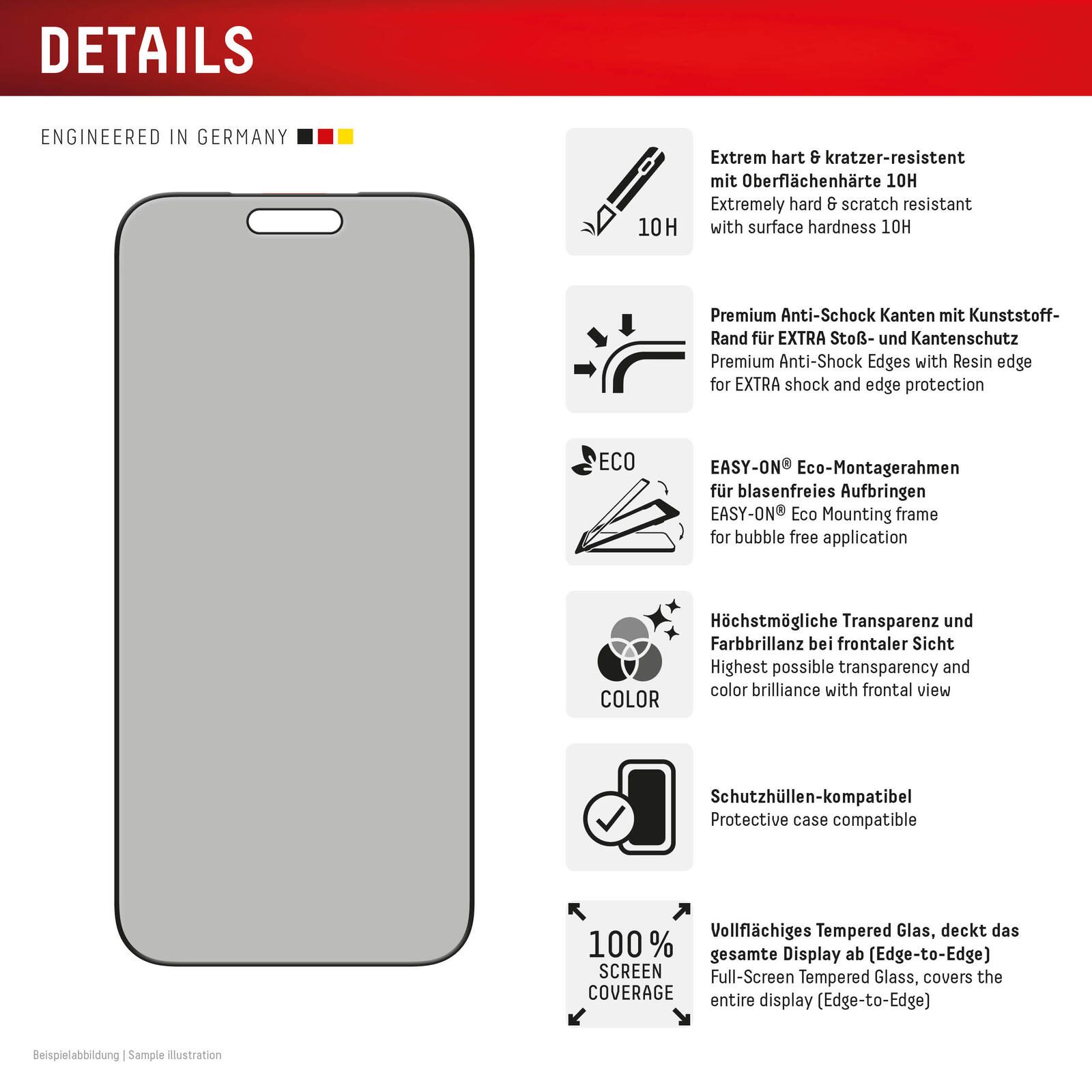 DISPLEX Privacy Panzerglas (10H) für Apple iPhone 17 Pro Max Eco-Montagerahmen, Privacy Filter, Tempered Glas, kratzer-resistente Schutzfolie