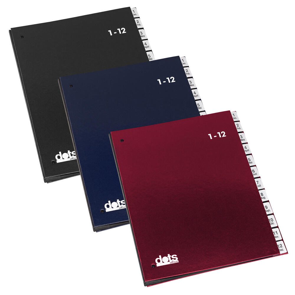 Der dots Pultordner DIN A4 in elegantem Schwarz ist die ideale Lösung für die Organisation deiner Unterlagen. Mit seinen 12 praktischen Taben, die von 1 bis 12 für die Monate Januar bis Dezember gekennzeichnet sind, ermöglicht er eine einfache und übersichtliche Sortierung deiner Dokumente. So behältst du jederzeit den Überblick über deine wichtigen Papiere und kannst sie schnell und unkompliziert finden. Hergestellt aus robustem Hartpappe und hochwertigem Kunststoff, bietet dieser Pultordner nicht nur eine ansprechende Optik, sondern auch eine hohe Langlebigkeit. Das Material sorgt dafür, dass der Ordner auch bei intensiver Nutzung stabil bleibt und deine Unterlagen optimal schützt. Mit einem Fassungsvermögen von ca. 600 Blatt ist der Pultordner perfekt für alle, die viel mit Papier arbeiten, sei es im Büro, in der Schule oder zu Hause. Der dots Pultordner ist speziell für das Format DIN A4 konzipiert, was ihn zu einem vielseitigen Begleiter für sämtliche Dokumente macht. Egal, ob du wichtige Verträge, Berichte oder persönliche Notizen abheften möchtest, dieser Ordner bietet ausreichend Platz und Struktur. Die zeitlose schwarze Farbe verleiht dem Pultordner eine professionelle Ausstrahlung und fügt sich harmonisch in jede Umgebung ein. Durch die praktische Gestaltung und die durchdachten Details wird die Organisation deiner Unterlagen zum Kinderspiel. Der dots Pultordner DIN A4 mit 12 Taben ist somit nicht nur ein funktionales, sondern auch ein stilvolles Accessoire für jeden Arbeitsplatz.Technische Daten