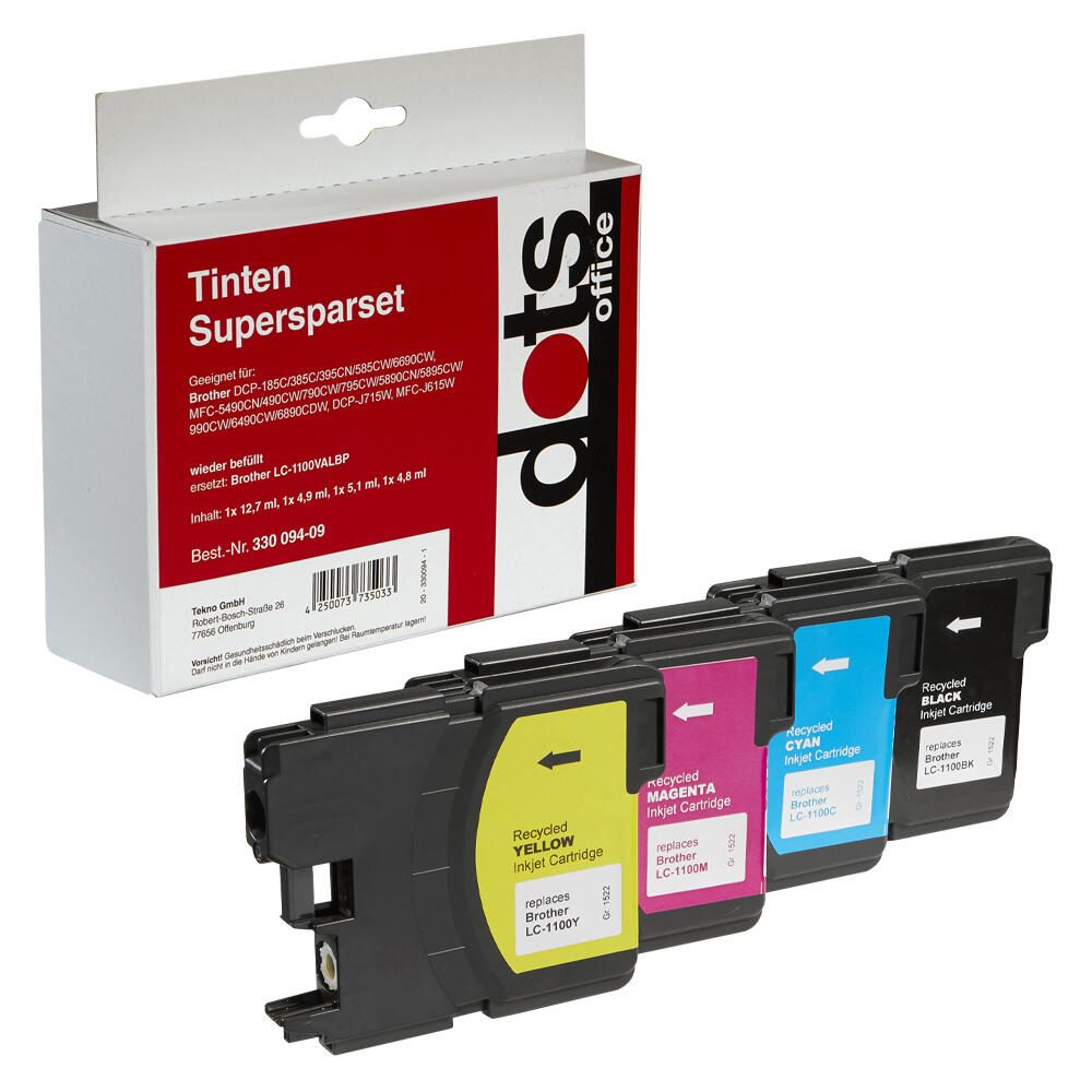 dots Druckerpatronen kompatibel zu brother LC-1100BK/C/M/Y, 4er-Set schwarz, cyan, magenta, gelb 1 Pack = 4 St.