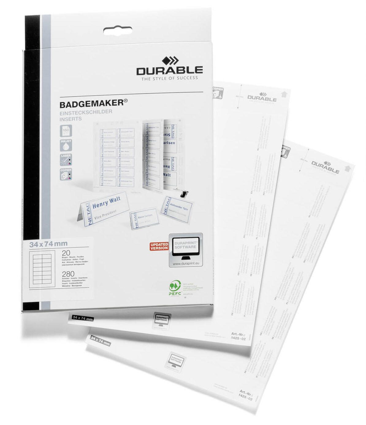 DURABLE Einsteckschilder für Namensschilder Badgemaker 7,4 x 3,4 cm