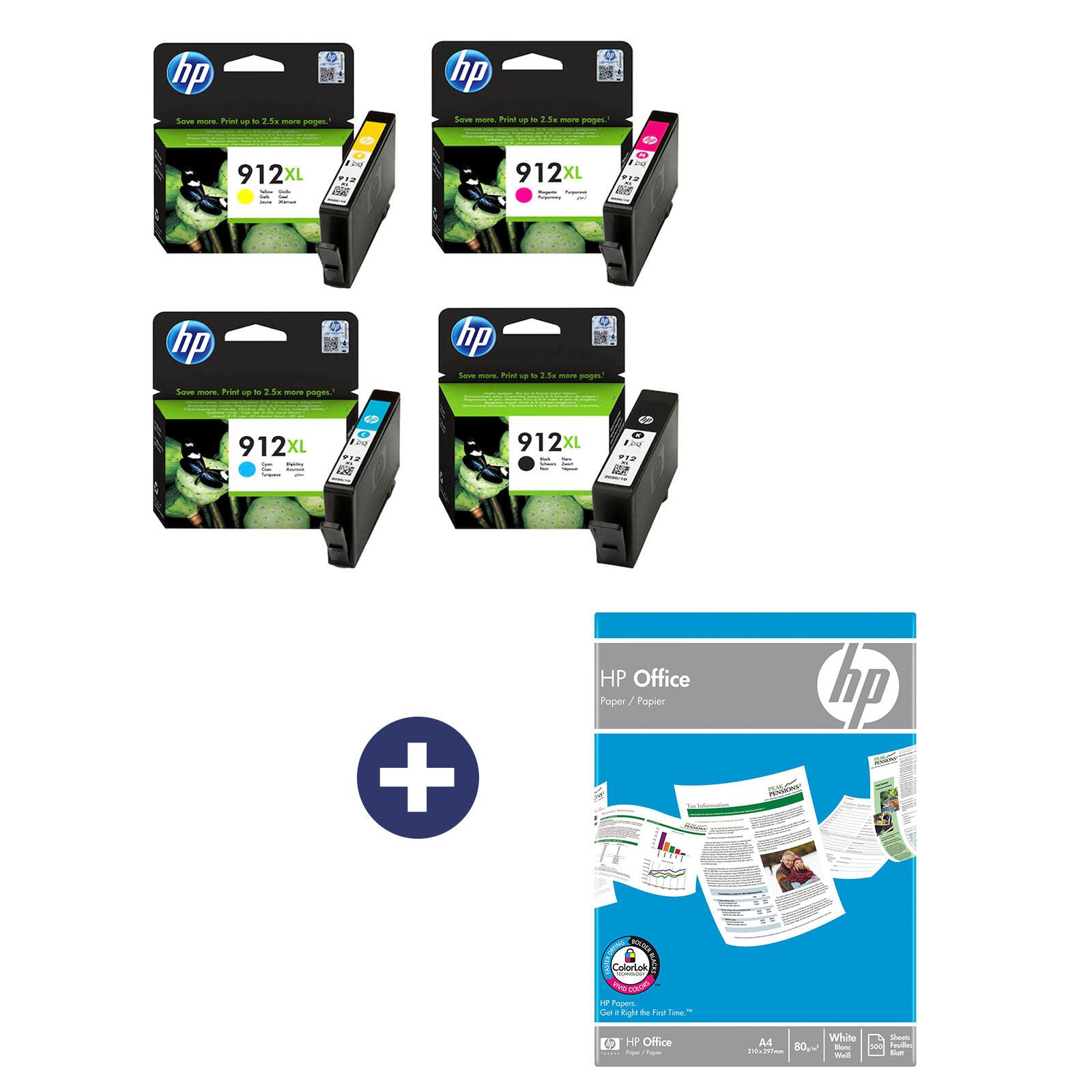 Druckerpatronen Bundle mit HP Original 912XL Multipack + 500 Blatt HP Kopierpapier