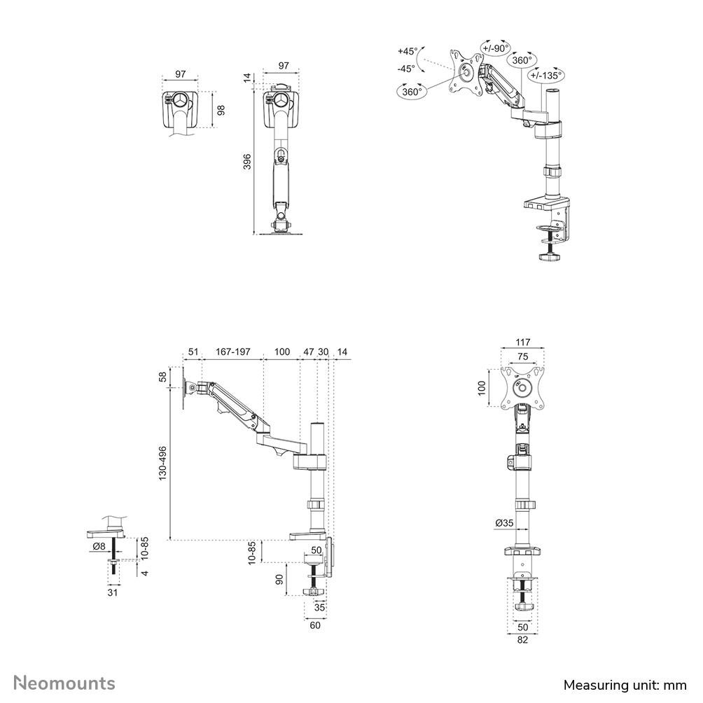 Neomounts DS70-750BL1 Monitor Tischhalterung für 1 Monitor 17 - 27 Zoll, max. 7KG, Vesa 75x75 - 100x100mm