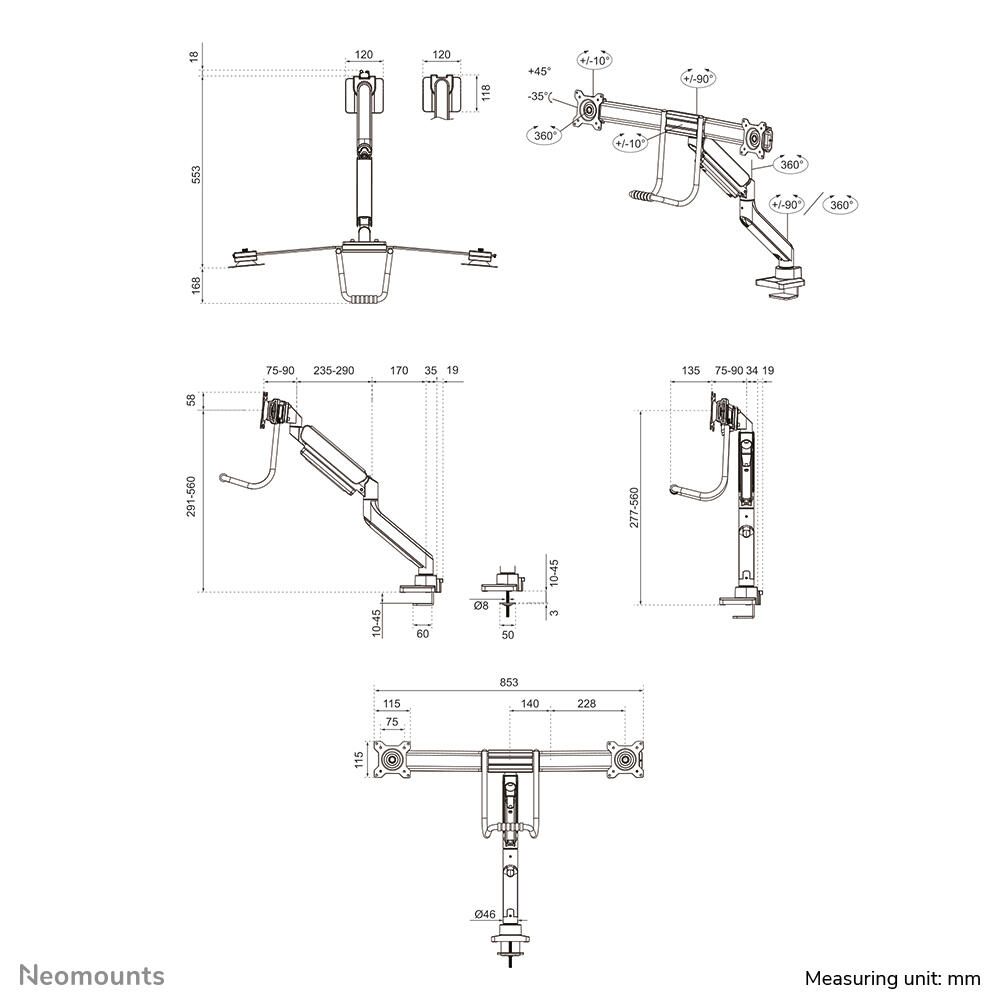 Neomounts DS75-450WH2 Monitor Tischhalterung