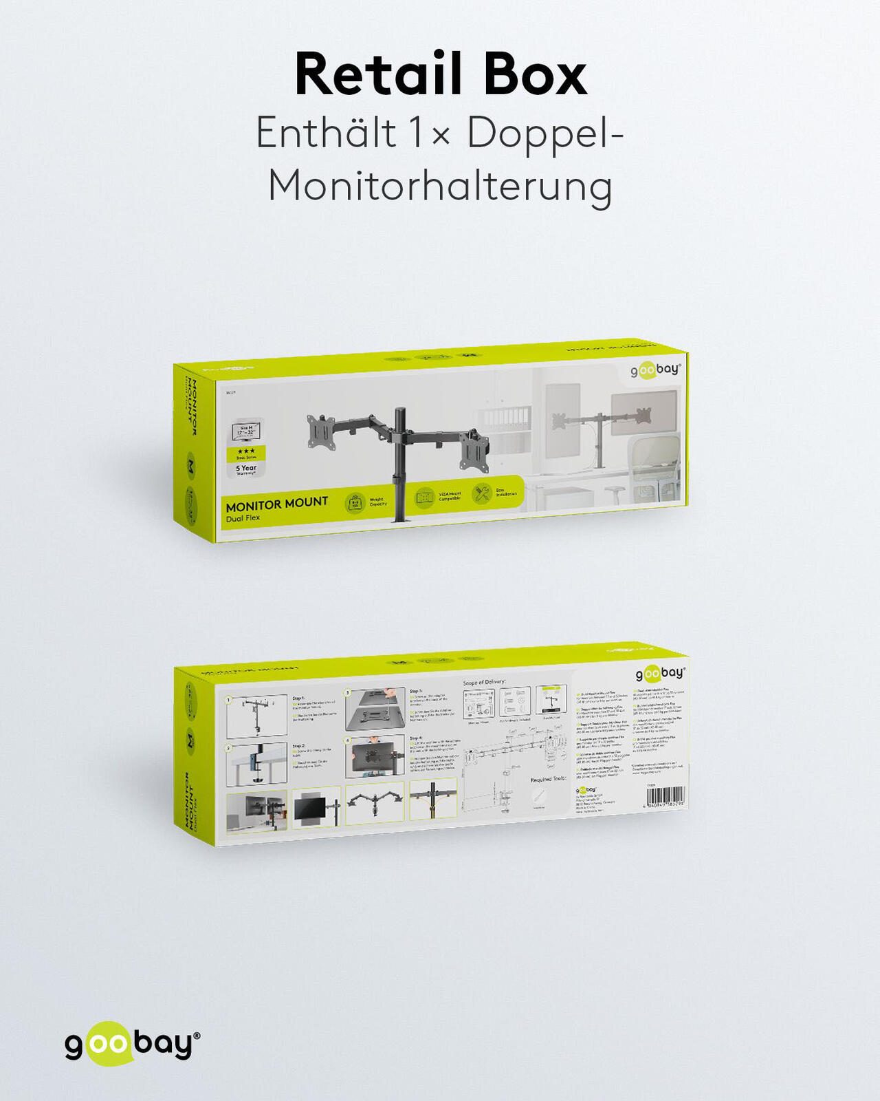 goobay Monitor-Halterung Dual Flex schwarz