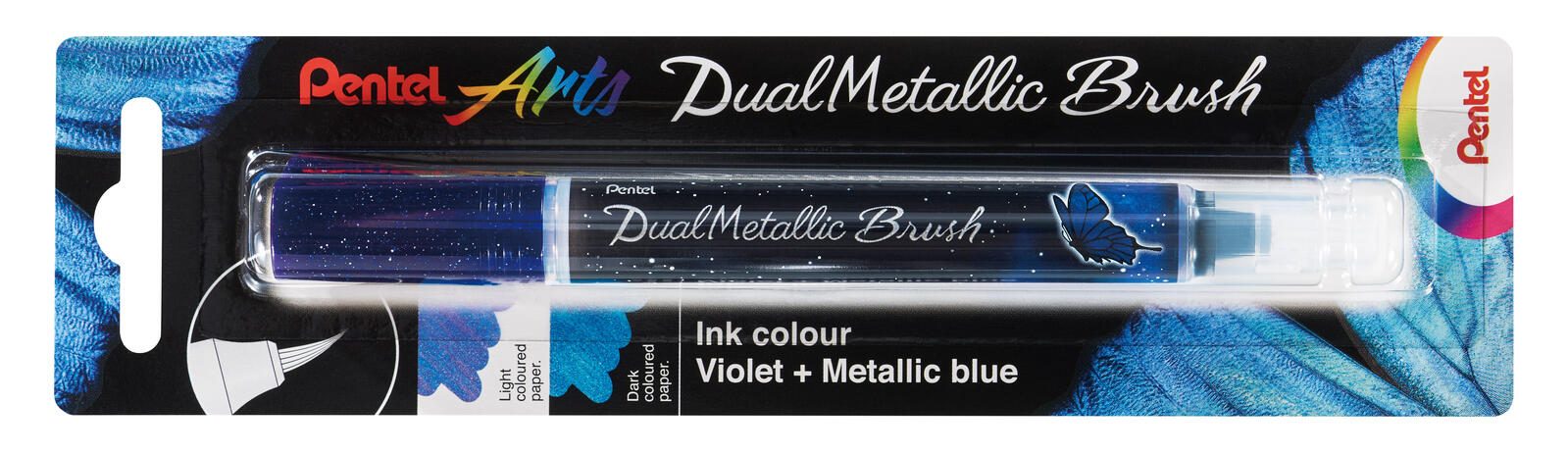 Der Hersteller dieses hochwertigen Brushpens ist Pentel, ein renommierter Anbieter von Schreibwaren. Die Stiftgriffart ist rund gehalten, was ein angenehmes Schreibgefühl garantiert. Geliefert wird der Brushpen ohne Etui, aber durch seine schwarze Farbe und die Detailfarben in Violett und Metallic-Blau ist er auch optisch ein echter Hingucker.