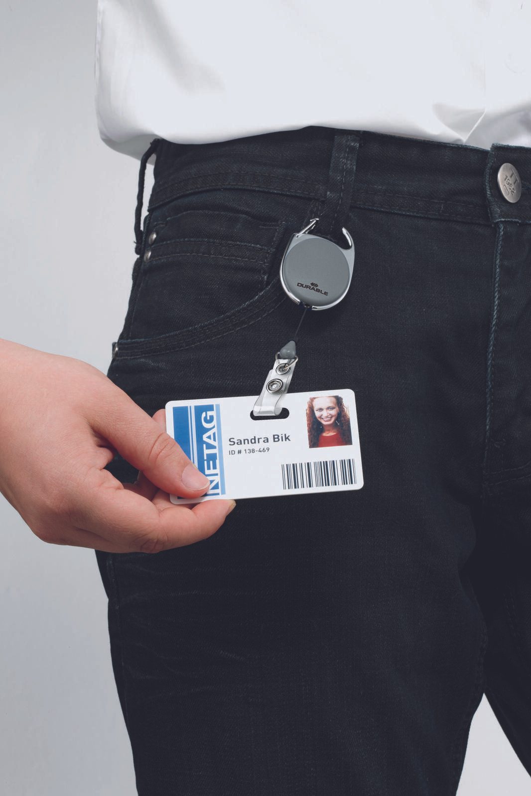 Der DURABLE Ausweishalter in elegantem grau vereint Funktionalität und modernes Design. Gefertigt aus hochwertigem Metall und Kunststoff, bietet dieser Ausweishalter nicht nur eine ansprechende Optik, sondern auch eine hohe Langlebigkeit. Mit seiner Druckknopfschlaufe lässt sich der Ausweishalter mühelos an verschiedenen Kleidungsstücken befestigen, was eine praktische Handhabung im Alltag gewährleistet. Die graue Farbgebung ist zeitlos und passt zu jedem Outfit, wodurch der Ausweishalter ideal für den Einsatz im Berufsleben, bei Veranstaltungen oder Messen geeignet ist. Er ist speziell konzipiert für alle DURABLE Namensschilder mit Clip-Ausstanzung, was dir die Flexibilität gibt, deine Ausweise oder Namensschilder einfach und sicher zu präsentieren. In einer praktischen Packung von 10 Stück erhältst du nicht nur ein ausgezeichnetes Preis-Leistungs-Verhältnis, sondern auch genügend Ausweishalter für verschiedene Anlässe oder für das gesamte Team. Die Kombination aus Funktionalität und ansprechendem Design macht den DURABLE Ausweishalter grau zu einer idealen Wahl für alle, die Wert auf Qualität und Stil legen. Setze auf die bewährte Qualität von DURABLE und genieße die Vorteile, die dieser Ausweishalter dir bietet. Er ist die perfekte Lösung, um deine Ausweise sicher und stilvoll zu tragen.Technische Daten