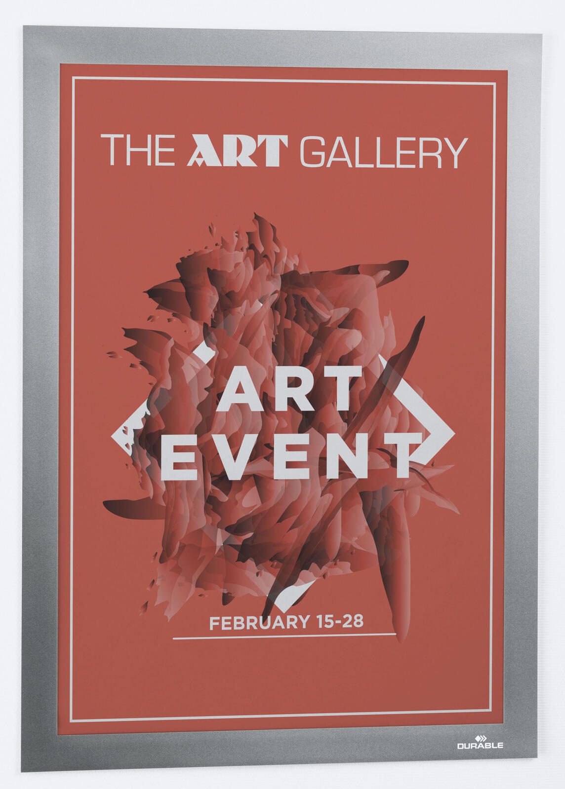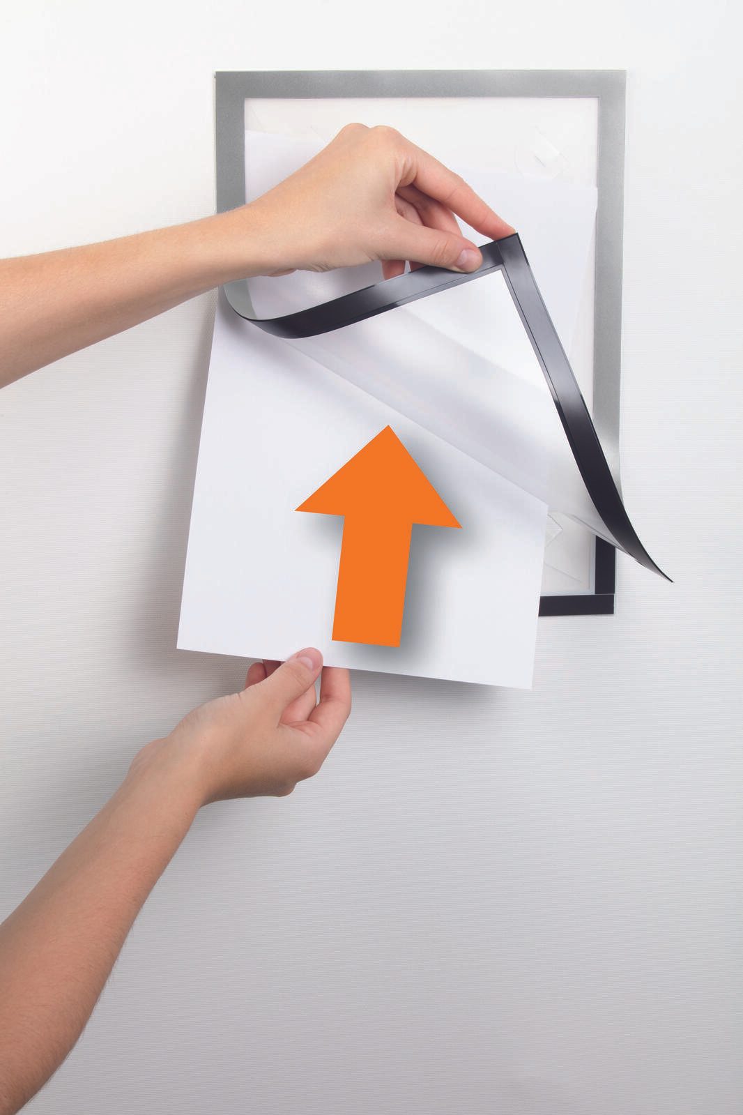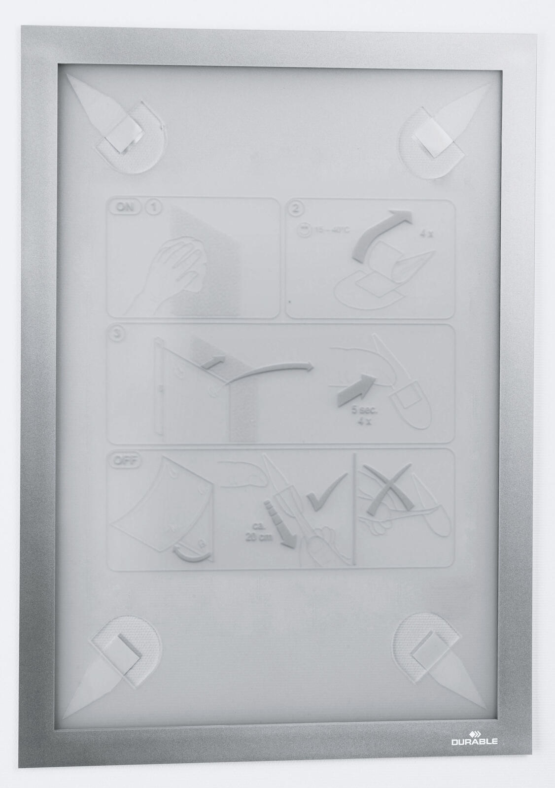 Der silberne Farbton des Rahmens fügt sich harmonisch in jede Umgebung ein und verleiht den präsentierten Dokumenten eine edle Note. Geeignet für Tapeten, Holz und die meisten Kunststoffoberflächen, ist der DURABLE Magnetrahmen vielseitig einsetzbar und passt sich unterschiedlichen Anforderungen an.