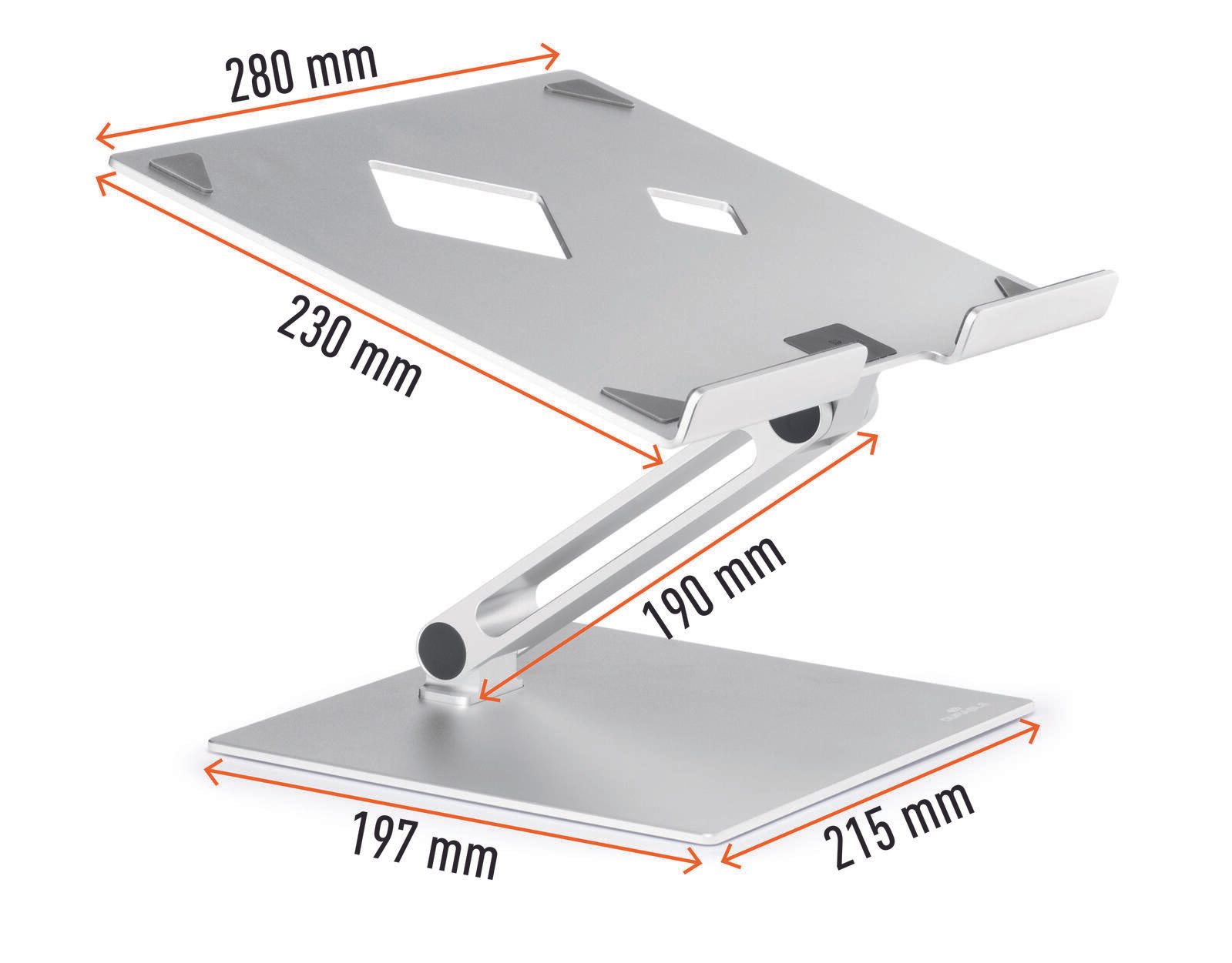Der DURABLE Notebook-Ständer RISE in elegantem Silber ist die ideale Lösung für ergonomisches Arbeiten mit Notebooks und Tablets. Hergestellt aus hochwertigem Aluminium, kombiniert dieser Ständer Stabilität und modernes Design. Mit einer Tragkraft von bis zu 5 kg bietet er sicheren Halt für Geräte mit Bildschirmgrößen von 10" (25,4 cm) bis 17" (43,2 cm).