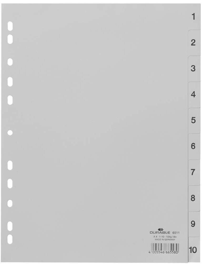 DURABLE - Trennelement - 10 Teile - für A4 - mit Register - Grau