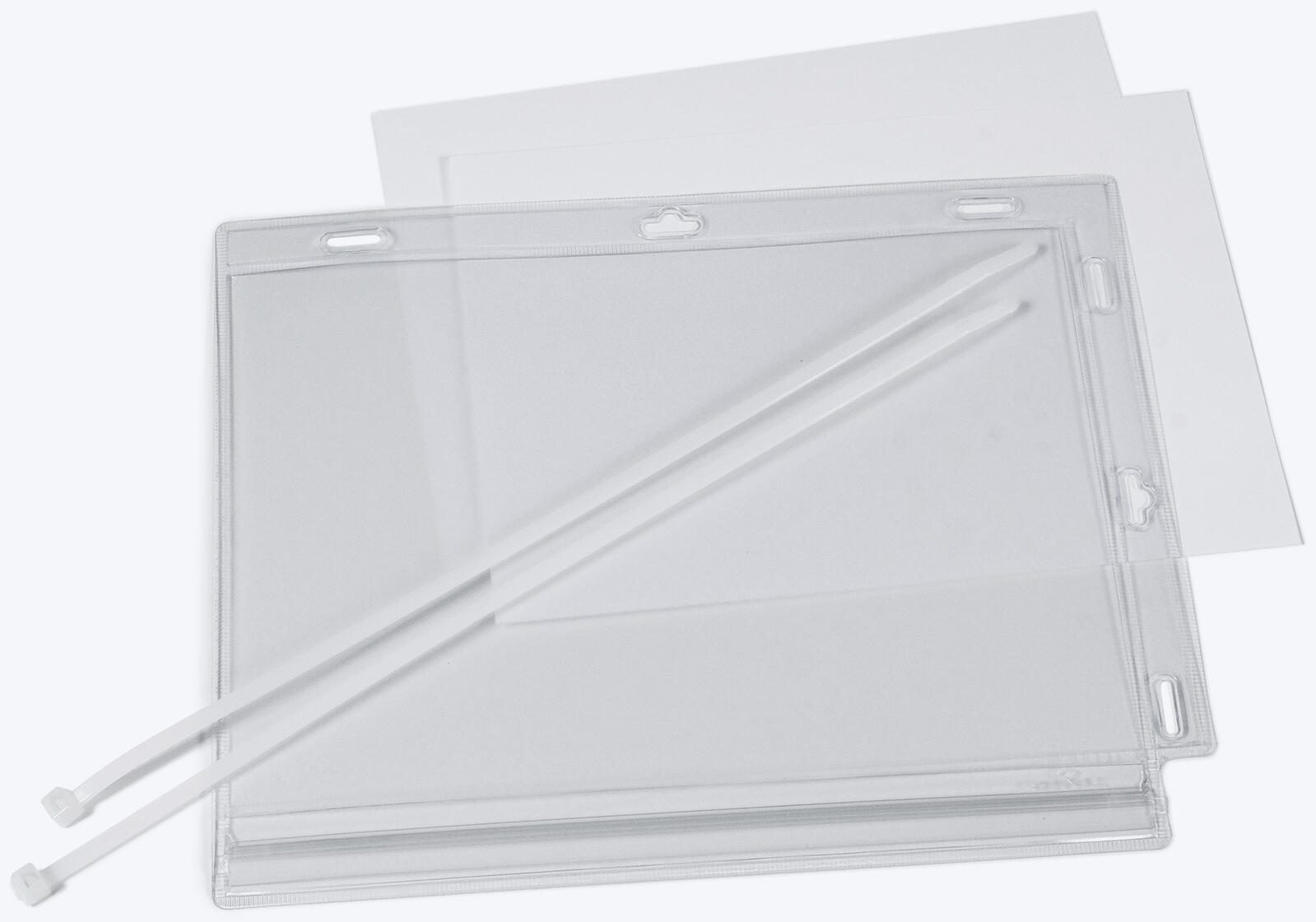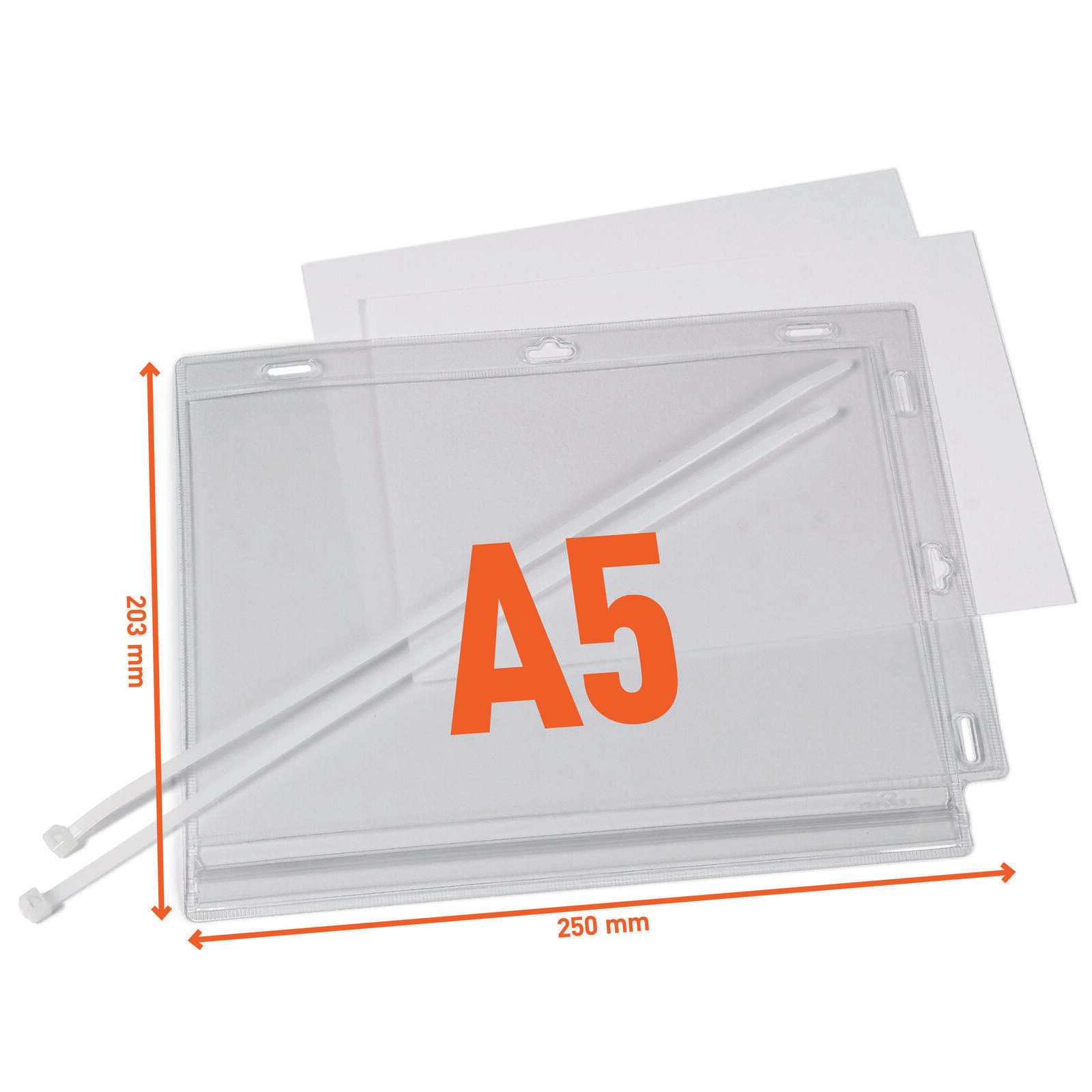Mit den Maßen 203,0 x 0,6 x 250,0 mm ist die Tasche ideal geeignet, um A5-Dokumente sicher und übersichtlich zu präsentieren. Die transparente Ausführung ermöglicht eine klare Sicht auf den Inhalt, ohne dass dieser entfernt werden muss. Durch die praktische Befestigung mit Kabelbindern kann die Plakattasche flexibel an verschiedenen Orten angebracht werden, was sie besonders vielseitig einsetzbar macht.