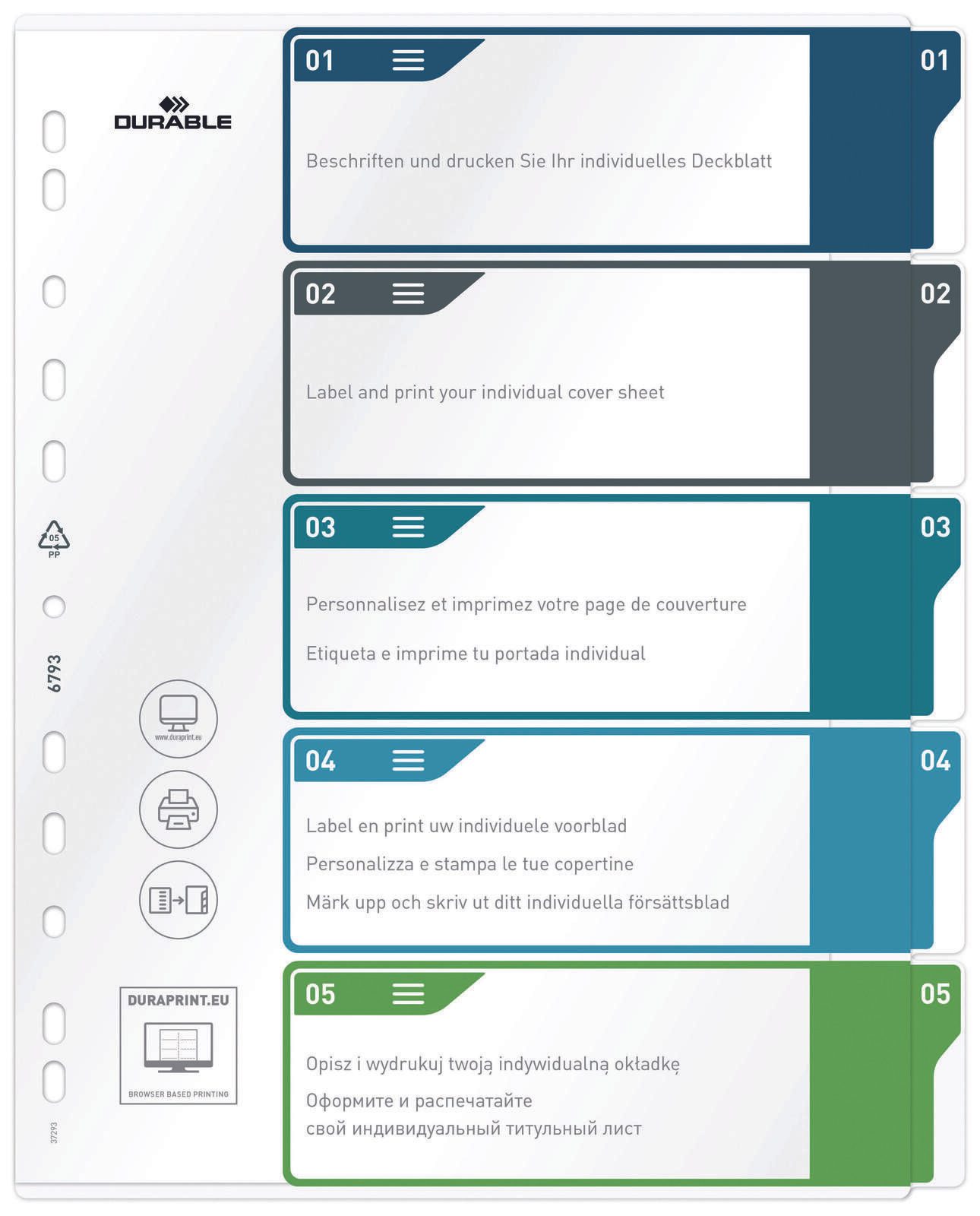 Die DURABLE Register A4 PP 5tlg. helfen dir, deine Unterlagen einfach und effizient zu organisieren. Hergestellt von DURABLE, einem renommierten Hersteller von Bürobedarf, bieten diese Register eine hochwertige Lösung für deinen Bürobedarf.