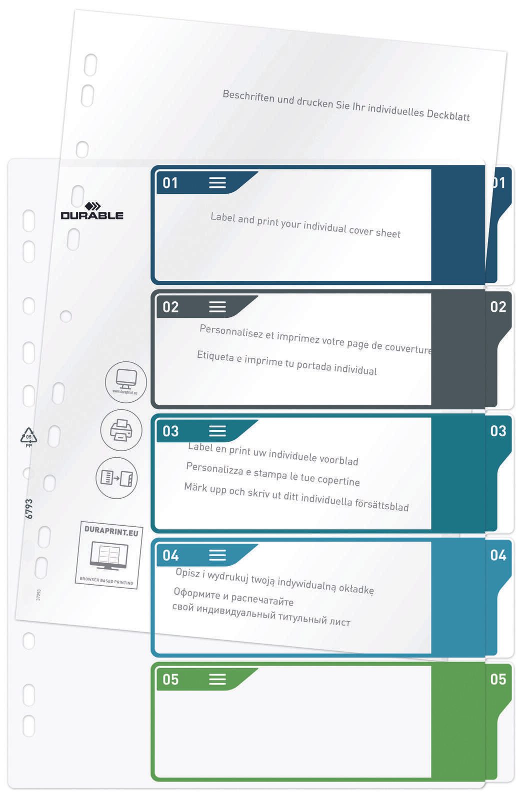 Die klare Benennung des Herstellers auf jedem Register - DURABLE Register A4 PP 5tlg. - sorgt für eine schnelle Identifizierung und macht es ideal für den Einsatz im professionellen Umfeld. Durch die Verwendung dieser Register kannst du sicher sein, dass deine Dokumente ordentlich und gut organisiert sind.