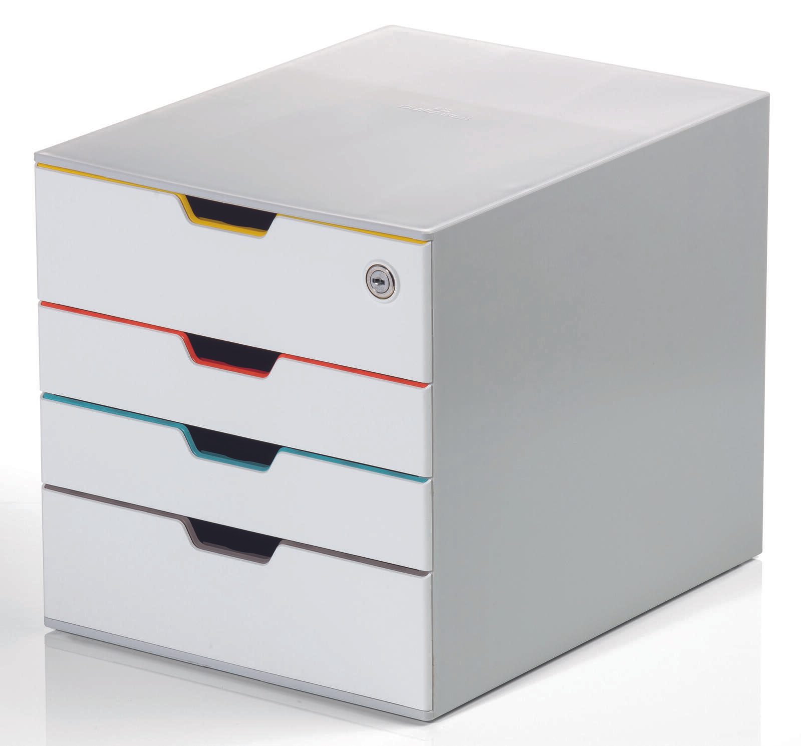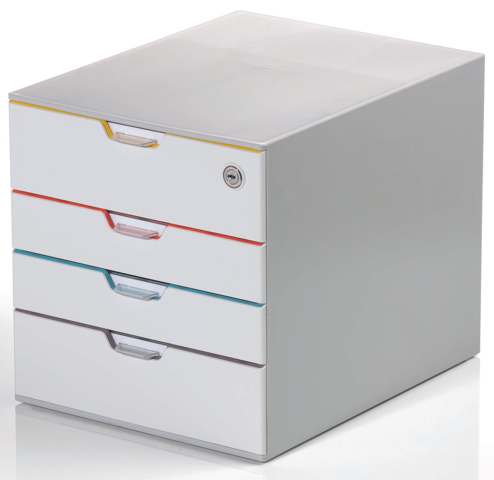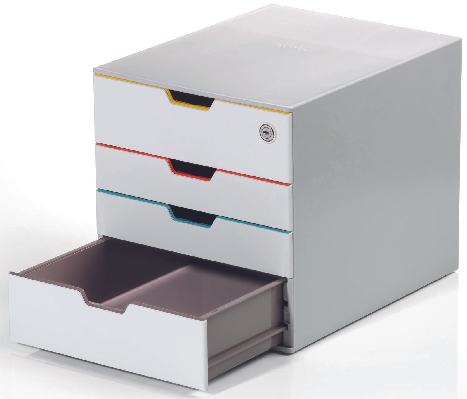 DURABLE Schubladenbox VARICOLOR® MIX SAFE A4 grau mit bunten Farblinien