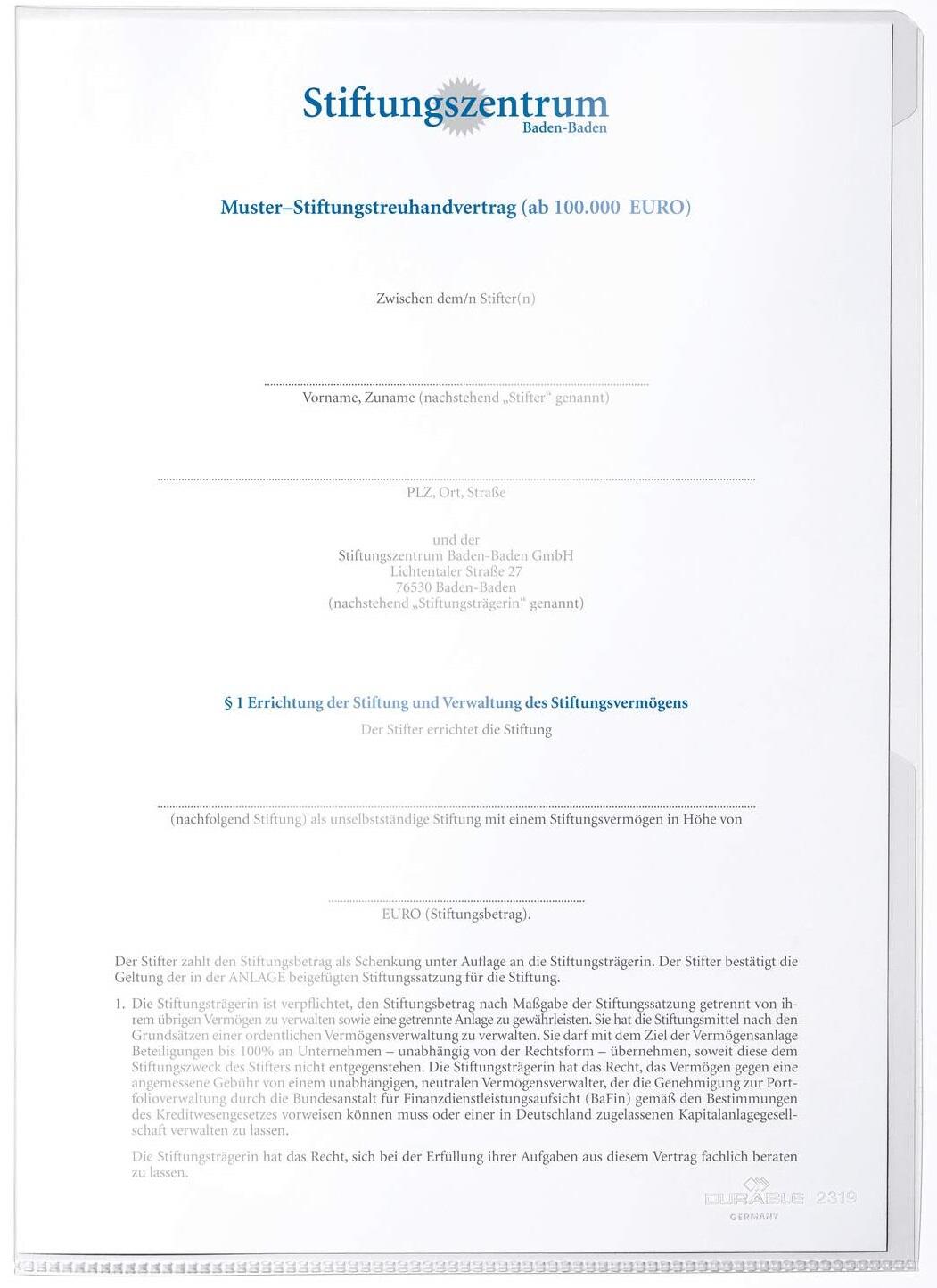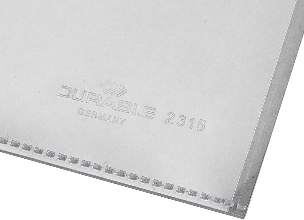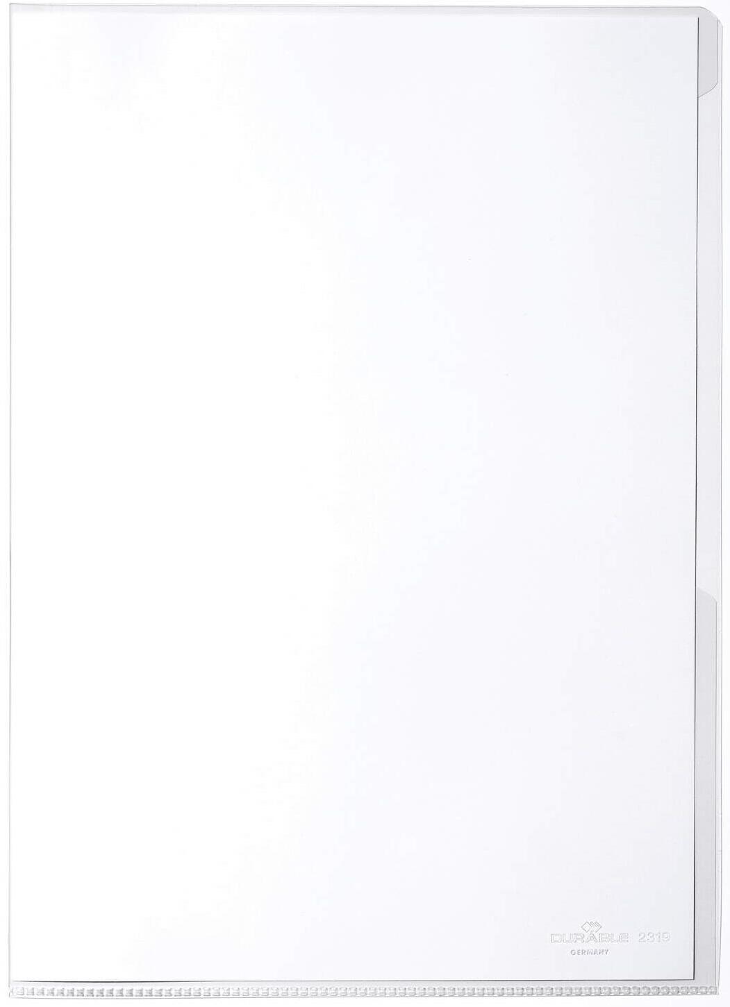 Die DURABLE Sichthülle BUSINESS A4 transparent ist die ideale Lösung für die sichere und ansprechende Präsentation deiner Dokumente. Hergestellt aus glasklarem Kunststoff mit einer Stärke von 15 my, bietet diese Sichthülle optimalen Schutz für deine Unterlagen, während sie gleichzeitig deren Inhalte klar und deutlich sichtbar macht. Die praktischen Einschuböffnungen befinden sich sowohl oben als auch rechts, was dir das Einlegen und Entnehmen von Dokumenten erleichtert. Mit einer Außenbreite von 218 mm und einer Höhe von 305 mm passt die Hülle perfekt in gängige Ordner und Ablagesysteme. Die Innenmaße von 210 mm in der Breite und 197 mm in der Höhe ermöglichen es dir, auch umfangreiche Dokumente problemlos unterzubringen. Ein weiteres Highlight dieser Sichthülle ist der dokumentenechte Aufdruck, der sicherstellt, dass deine wichtigen Papiere nicht nur geschützt, sondern auch professionell präsentiert werden. Die DURABLE Sichthülle BUSINESS ist somit nicht nur funktional, sondern auch eine stilvolle Ergänzung für dein Büro oder deine Unterlagen zu Hause. Mit einer Packung von 100 Stück bist du bestens ausgestattet, egal ob für den täglichen Gebrauch im Büro, für Präsentationen oder für die Organisation von Unterlagen. Vertraue auf die Qualität von DURABLE und erlebe, wie einfach und effektiv die Aufbewahrung und Präsentation deiner Dokumente sein kann.Technische Daten