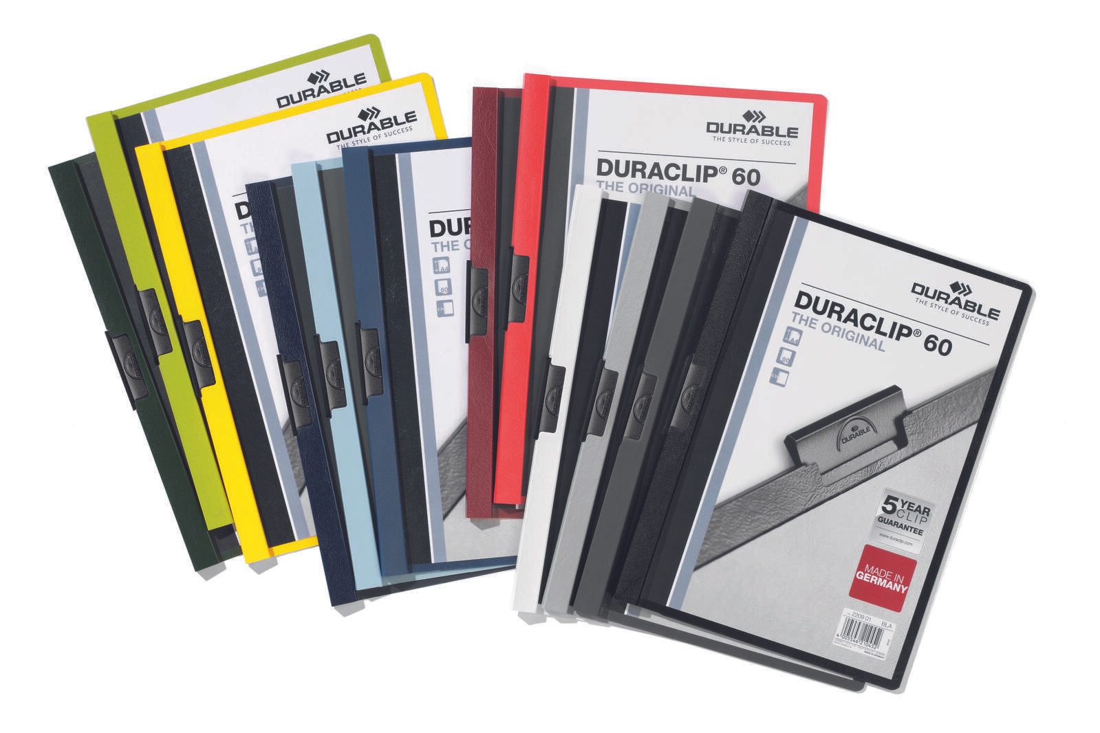 DURABLE Klemmhefter Duraclip DIN A4 5x rot, weiß, anthrazit, hellblau und dunkelgrün