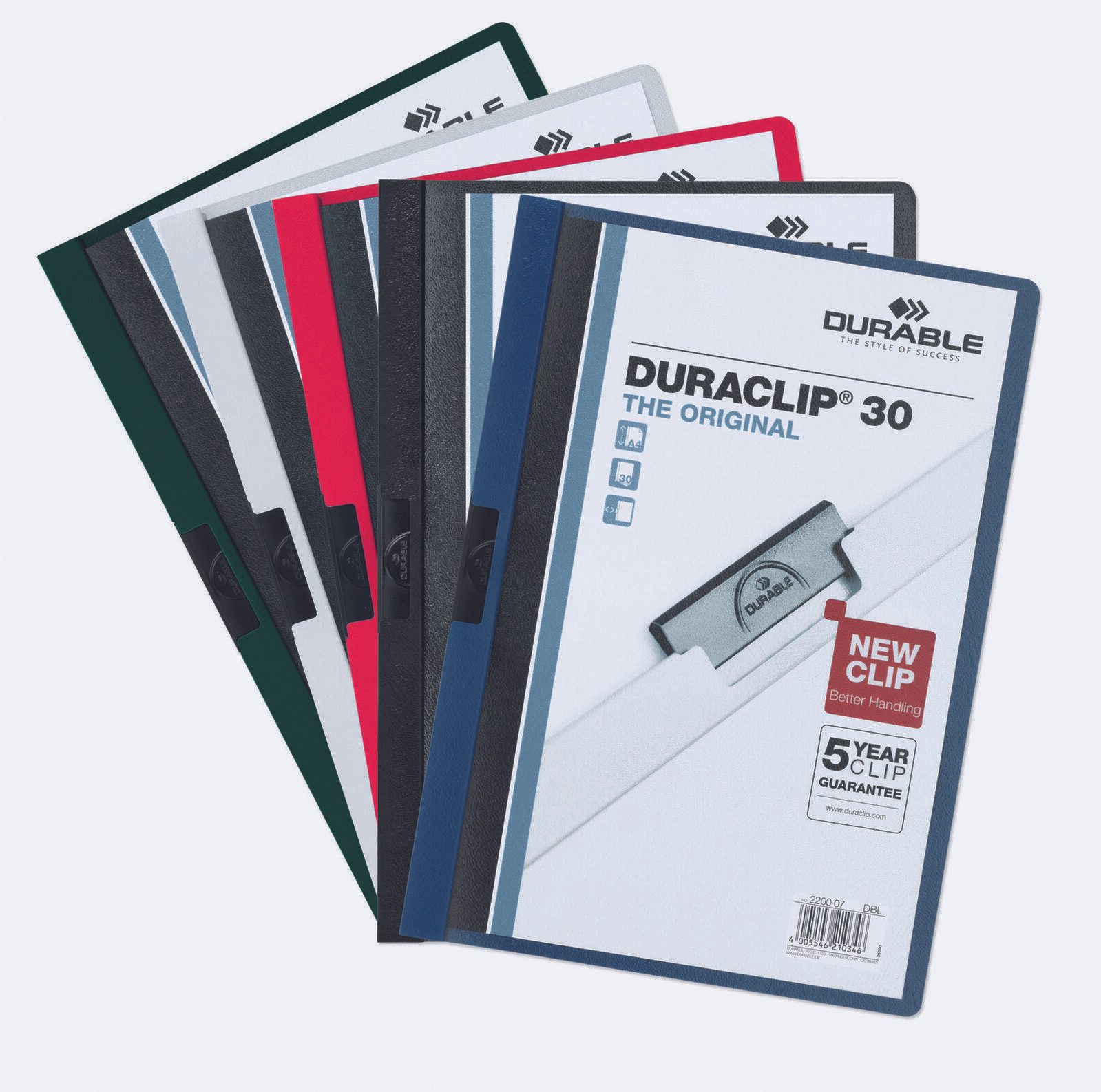 DURABLE Klemmhefter Duraclip DIN A4 rot, schwarz, weiß, dunkelblau und dunkelgrün