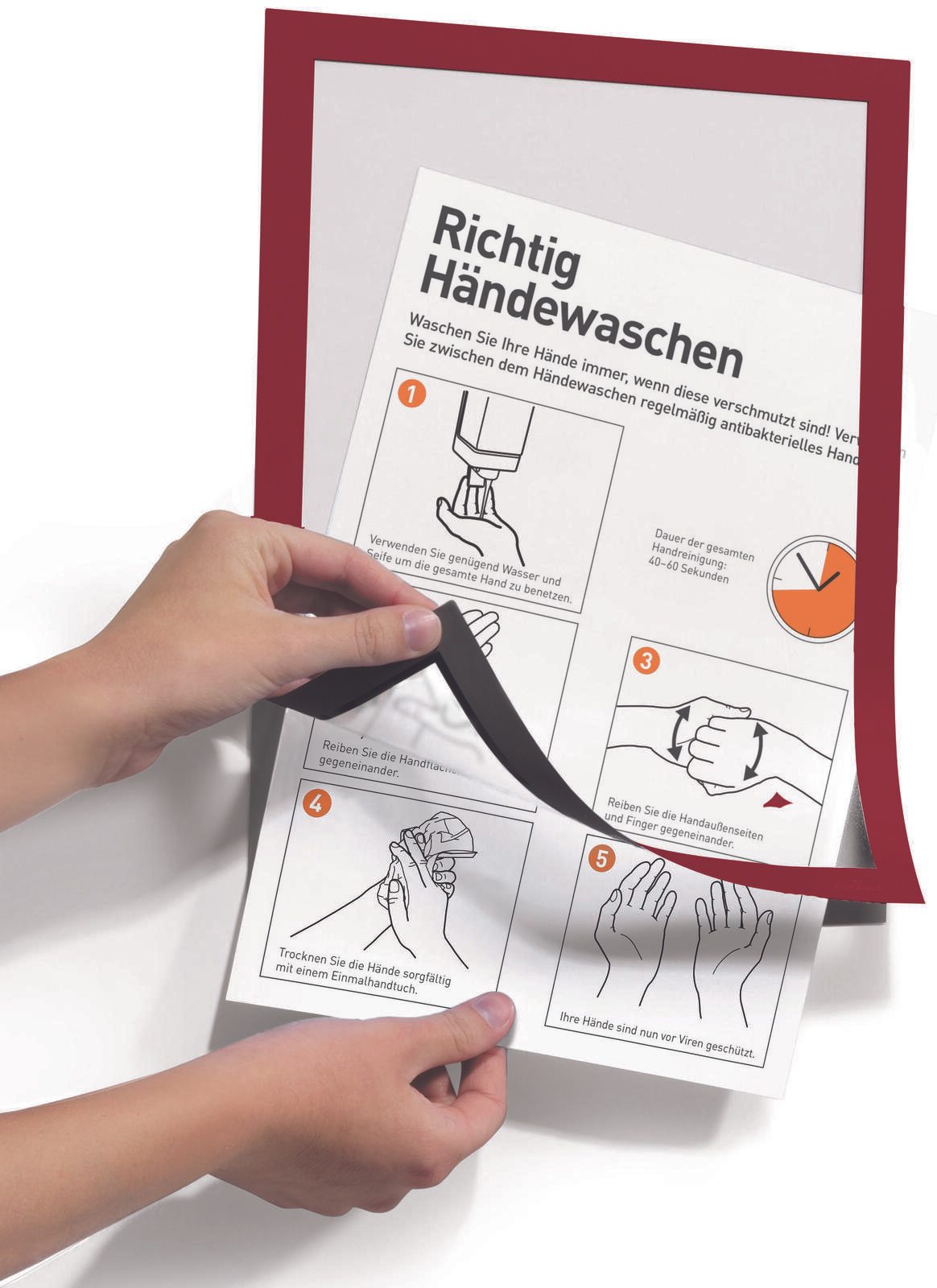 Der DURABLE Magnetrahmen selbstklebend DURAFRAME® A3 in auffälligem Rot ist die perfekte Lösung, um deine Informationen stilvoll und flexibel zu präsentieren. Mit einem praktischen Öffnungsdesign, das sowohl von unten als auch seitlich zugänglich ist, ermöglicht dieser Rahmen einen schnellen Austausch von Inhalten, ohne dass du ihn abnehmen musst. Hergestellt aus hochwertigem PVC, bietet der DURAFRAME® nicht nur eine ansprechende Optik, sondern auch eine hohe Langlebigkeit. Die robuste Materialbeschaffenheit sorgt dafür, dass der Rahmen auch in anspruchsvollen Umgebungen, wie beispielsweise an Glastüren, Fenstern oder Wänden, optimal verwendet werden kann. Mit einem Format von A3 eignet sich dieser Magnetrahmen ideal für die Präsentation von Plakaten, Informationen oder auch persönlichen Kunstwerken. Die leuchtende rote Farbe zieht die Blicke an und sorgt dafür, dass deine Inhalte stets im Mittelpunkt stehen. Im Lieferumfang sind zwei Stück enthalten, sodass du gleich mehrere Bereiche effektiv gestalten kannst. Ob im Büro, im Geschäft oder in der eigenen Wohnung, der DURABLE Magnetrahmen selbstklebend DURAFRAME® A3 ist eine praktische und ansprechende Lösung für alle, die Wert auf eine klare und ansprechende Präsentation legen.Technische Daten
