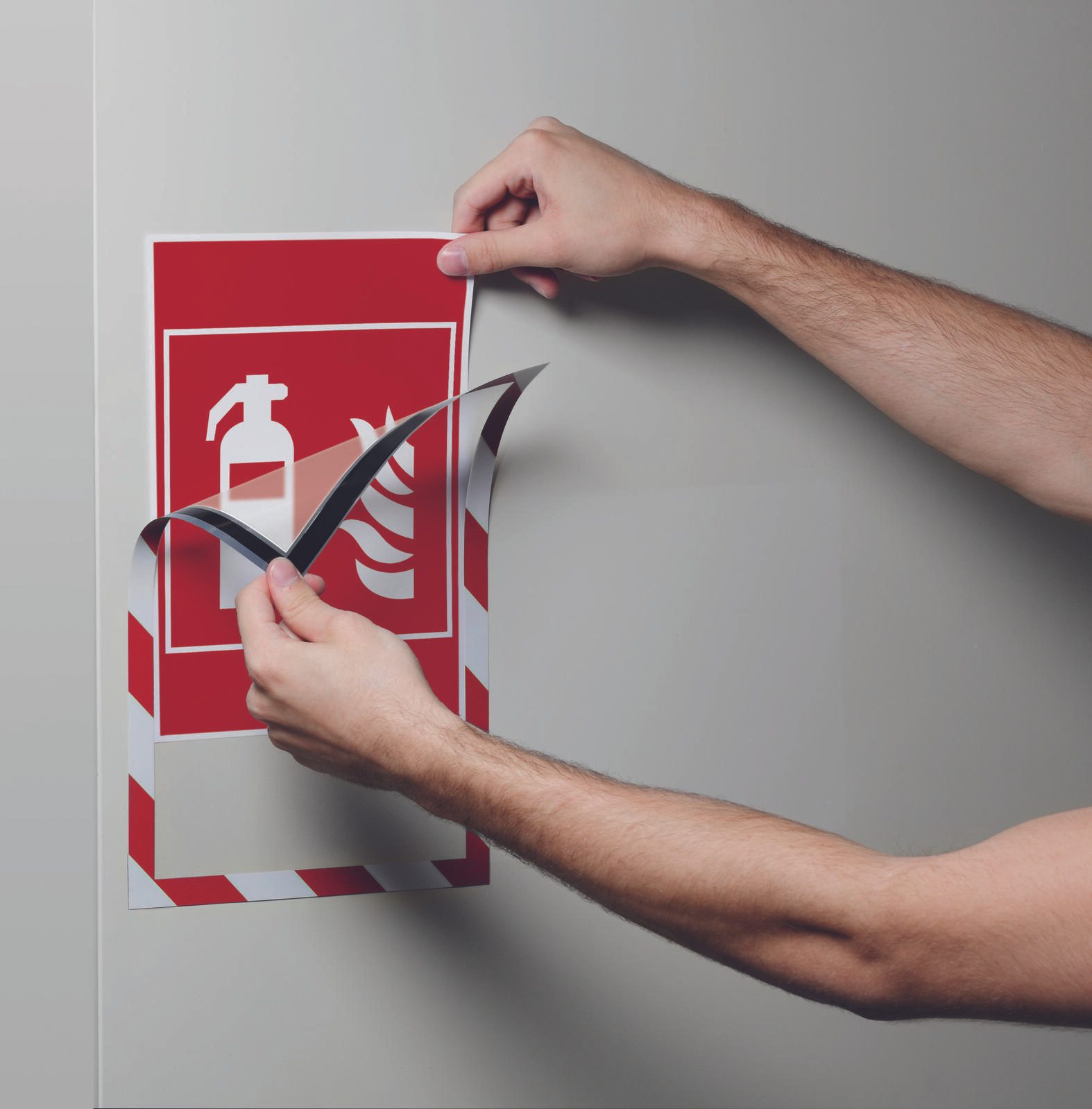 Der DURABLE Magnetrahmen DURAFRAME® MAGNETIC SECURITY A4 ist die ideale Lösung, um wichtige Informationen ansprechend und sicher zu präsentieren. Mit seiner auffälligen rot/weißen Farbgestaltung zieht dieser Magnetrahmen sofort die Aufmerksamkeit auf sich und eignet sich hervorragend für den Einsatz in Büros, Schulen oder öffentlichen Einrichtungen. Das Design des Rahmens ermöglicht eine einfache Handhabung, da die Öffnung sowohl unten als auch seitlich erfolgt. Dadurch kannst du Dokumente schnell und unkompliziert einlegen oder austauschen, ohne den gesamten Rahmen abnehmen zu müssen. Der Rahmen ist aus antireflektierender Hartfolie gefertigt, was bedeutet, dass deine Inhalte auch bei direkter Lichtquelle gut lesbar bleiben und vor unerwünschten Reflexionen geschützt sind. Dieser Magnetrahmen ist speziell für alle eisenhaltigen Flächen geeignet, wie beispielsweise Whiteboards oder Stahlschränke. So kannst du deine Informationen flexibel und sicher anbringen, ohne zusätzliche Befestigungsmittel zu benötigen. Die starke Magnetkraft sorgt dafür, dass der Rahmen auch bei häufigem Zugriff stets an Ort und Stelle bleibt. Im praktischen Pack sind fünf Stück enthalten, was dir die Möglichkeit gibt, mehrere Informationen gleichzeitig zu präsentieren oder verschiedene Bereiche in deinem Büro oder Klassenzimmer zu organisieren. Der DURABLE Magnetrahmen DURAFRAME® MAGNETIC SECURITY A4 vereint Funktionalität und ansprechendes Design und ist somit die perfekte Wahl für alle, die Wert auf Ordnung und Übersichtlichkeit legen.Technische Daten