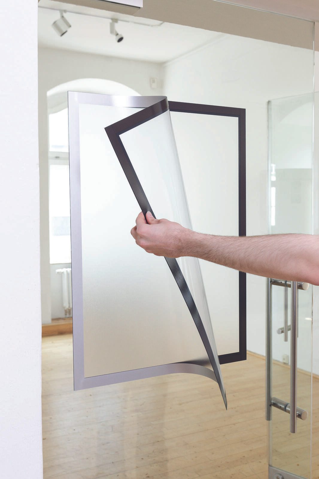 Der DURABLE Magnetrahmen ist Teil der Duraframe Serie des renommierten Herstellers DURABLE und eignet sich ideal für die Anbringung an Glastüren, Fenstern und Wänden. Speziell für Formate im DIN A2-Format entwickelt, trägt er die Bezeichnung "Duraframe Poster A2 silber".
