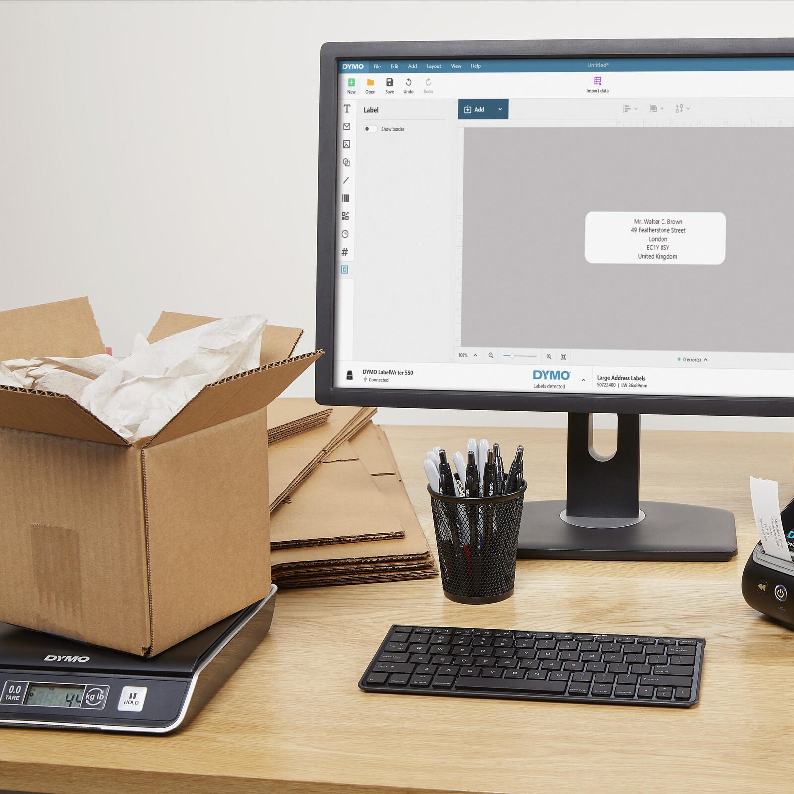 Mit der digitalen Briefwaage DYMO M2 können Sie Umschläge und Pakete bis zu 2 kg wiegen. Verbinden Sie die Waage via USB mit Ihrem PC oder Mac und verwenden Sie beliebte Versandsoftware, einschließlich Endicia InstaRate** und DYMO Stamps***, um Porto online ohne monatliche Gebühr zu berechnen und zu kaufen. Die praktische Halte-Funktion sperrt die Gewichtsanzeige für 10 Sekunden. Die Tara-Funktion wiegt Artikel genauestens in einem Behälter. Mit automatischem Abschalten und LCD-Anzeige, die das Gewicht in einfach lesbarem Format zeigt – in lbs/oz oder kg/g. Das Gerät kann mit USB-Kabel (enthalten) betrieben werden oder mit AAA-Batterien (nicht enthalten).