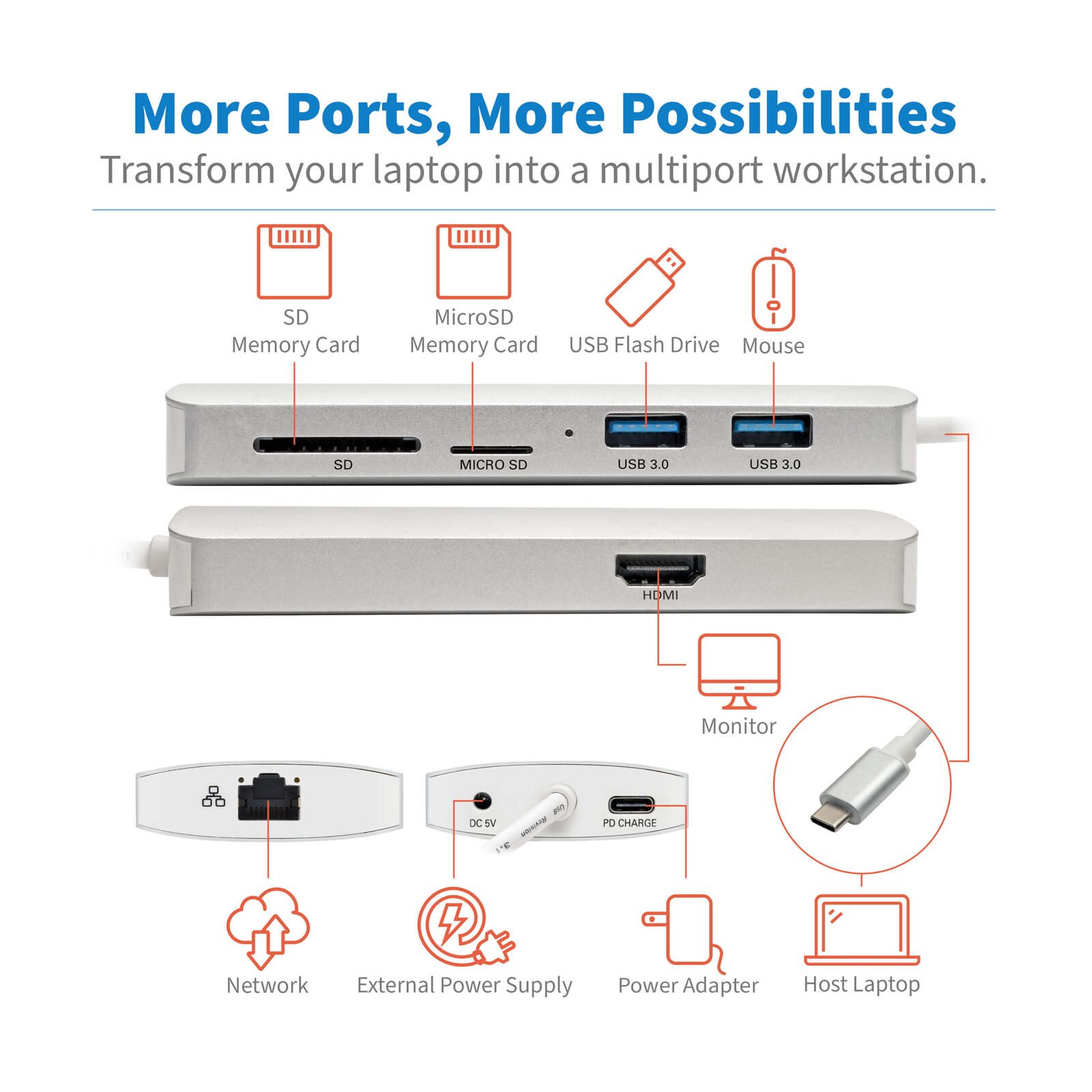 Eaton Tripp Lite Series USB-C Dock - 4K HDMI, USB 3.2 Gen 1, USB-A/C Hub, GbE, Memory Card, 60W PD Charging