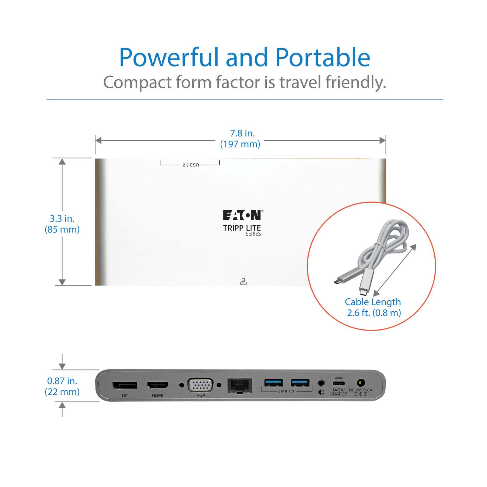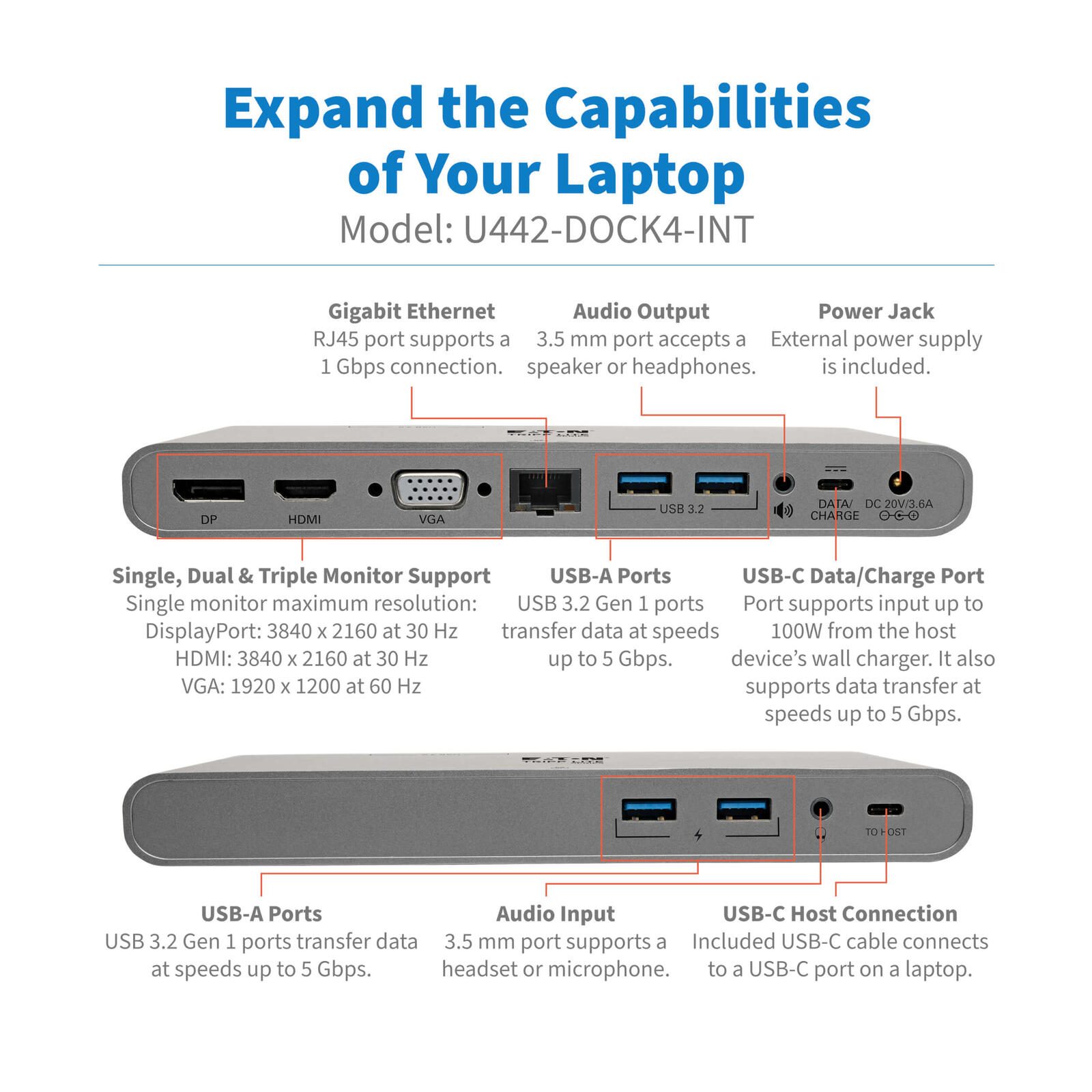 Eaton Tripp Lite Series USB-C Dock, Triple Display - 4K HDMI/DisplayPort, VGA, USB 3.2 Gen 1, USB-A/USB-C Hub, GbE, 100W PD Charging, International Power Kabels