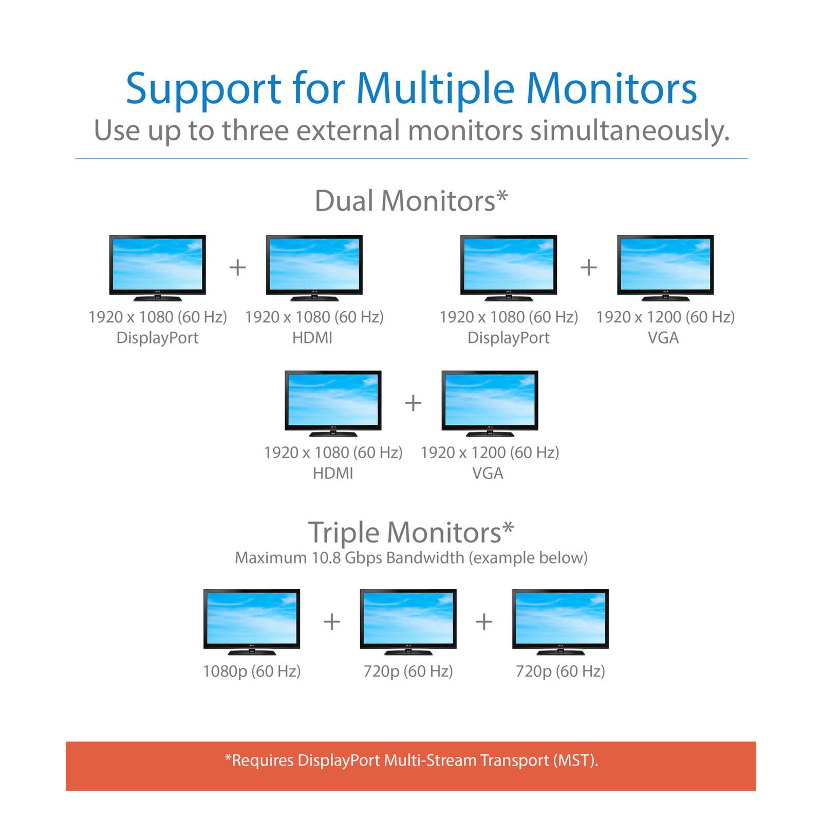 - Anschluss von 3 Bildschirmen gleichzeitig für einfaches Multitasking und höhere Produktivität
