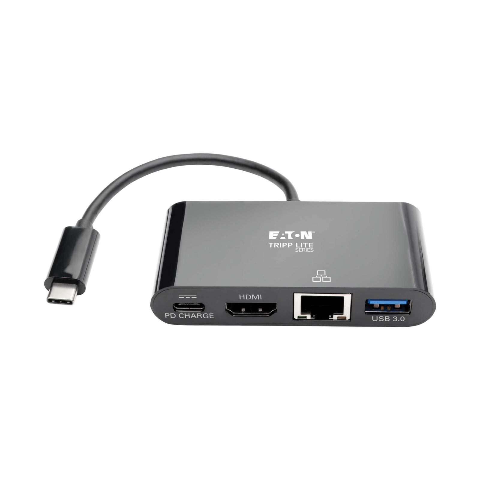 Eaton Tripp Lite Series USB-C Multiport Adapter - HDMI, USB 3.0 Port, GbE, 60W PD Charging, HDCP, Schwarz