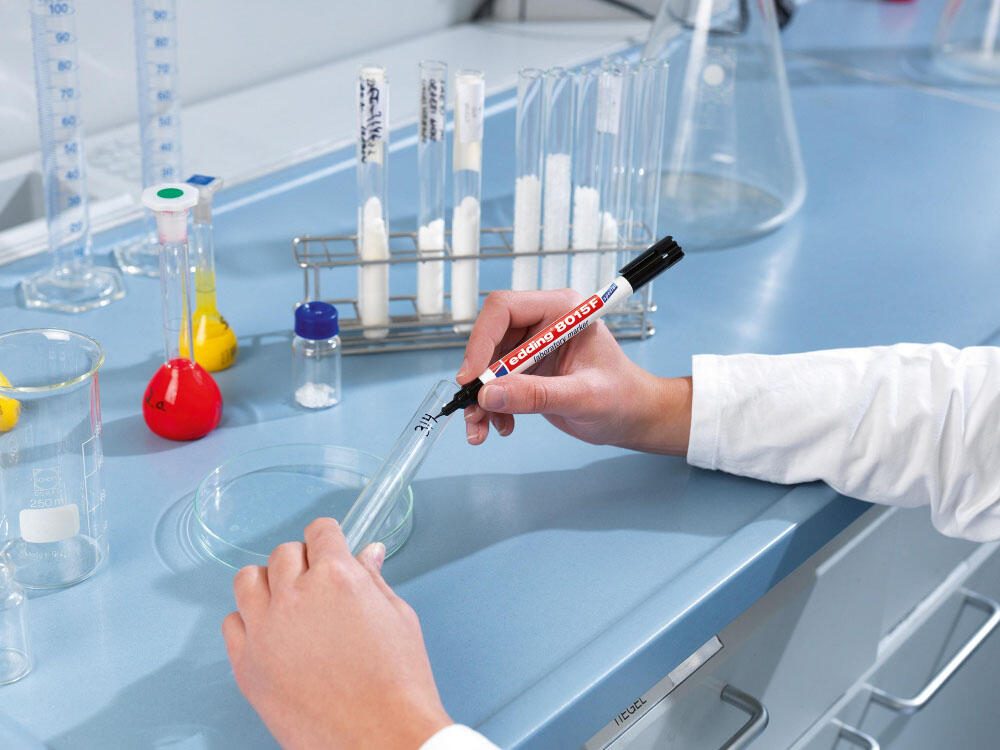 Du möchtest präzise und dauerhafte Beschriftungen auf glatten und transparenten Oberflächen anfertigen? Dann ist der edding 8015 Labormarker in der Farbe Schwarz die ideale Lösung für dich. Mit seiner Rundspitze ermöglicht er feine Linien mit einer Strichstärke von 0.75 mm. Dieser Labormarker von edding besticht durch seine Vielzahl an Eigenschaften, die ihn zum unverzichtbaren Werkzeug in Labors machen. Er ist nicht nur geruchsarm, sondern auch permanent, schnell trocknend und wischfest. Somit gewährleistet er präzise Markierungen, die auch unter widrigen Bedingungen beständig bleiben. Darüber hinaus ist der Marker wasserfest und lichtbeständig, sodass deine Beschriftungen lange lesbar bleiben. Die Rundspitze des edding 8015 Labormarkers ist auswechselbar, was seine Langlebigkeit und Vielseitigkeit erhöht. Ein weiterer Vorteil ist seine Offenlagerfähigkeit, die dir ermöglicht, ihn auch über längere Zeit zu verwenden, ohne dass er austrocknet. Das Produkt stammt aus dem Hause edding, einem renommierten Hersteller von Markierungsutensilien. Durch die weiße Farbe eignet sich dieser Labormarker besonders gut für das Beschriften von Reaktionsgläsern und anderen glatten Oberflächen. Hol dir jetzt den edding 8015 Labormarker und erlebe die Präzision und Zuverlässigkeit eines Markenprodukts, das speziell für den Einsatz im Labor entwickelt wurde.Technische Daten