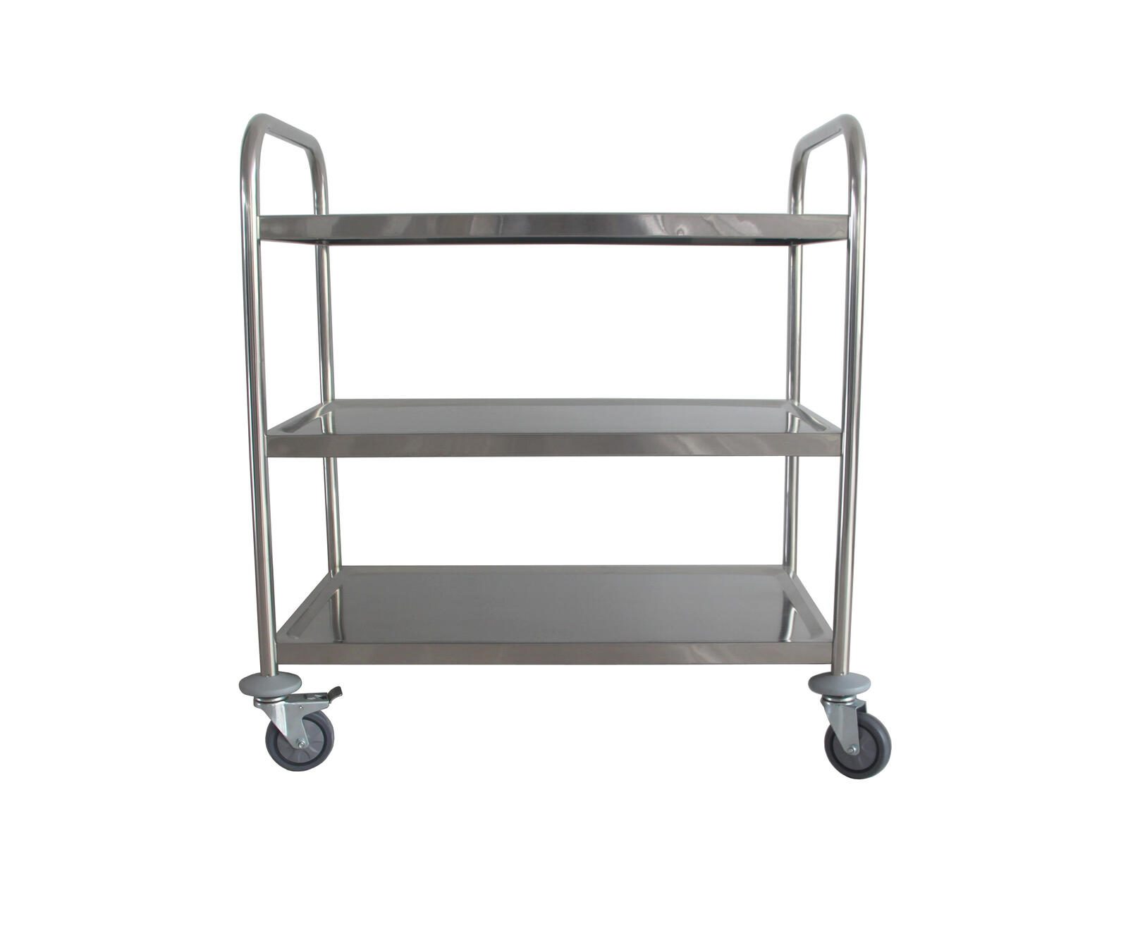 Die Tischplatte aus hochwertigem Edelstahl verleiht dem Servierwagen nicht nur eine moderne Note, sondern sorgt auch für eine einfache Reinigung und Langlebigkeit. Der Rahmen aus robustem Metall in silberner Farbe ergänzt das ansprechende Design und macht den Wagen zu einem echten Blickfang in deiner Küche oder deinem Esszimmer. Die Bereifung aus Gummi sorgt für eine reibungslose Bewegung, während die vier Rollen, von denen zwei feststellbar sind, dir die Möglichkeit geben, den Wagen sicher zu positionieren und bei Bedarf leicht zu bewegen.
