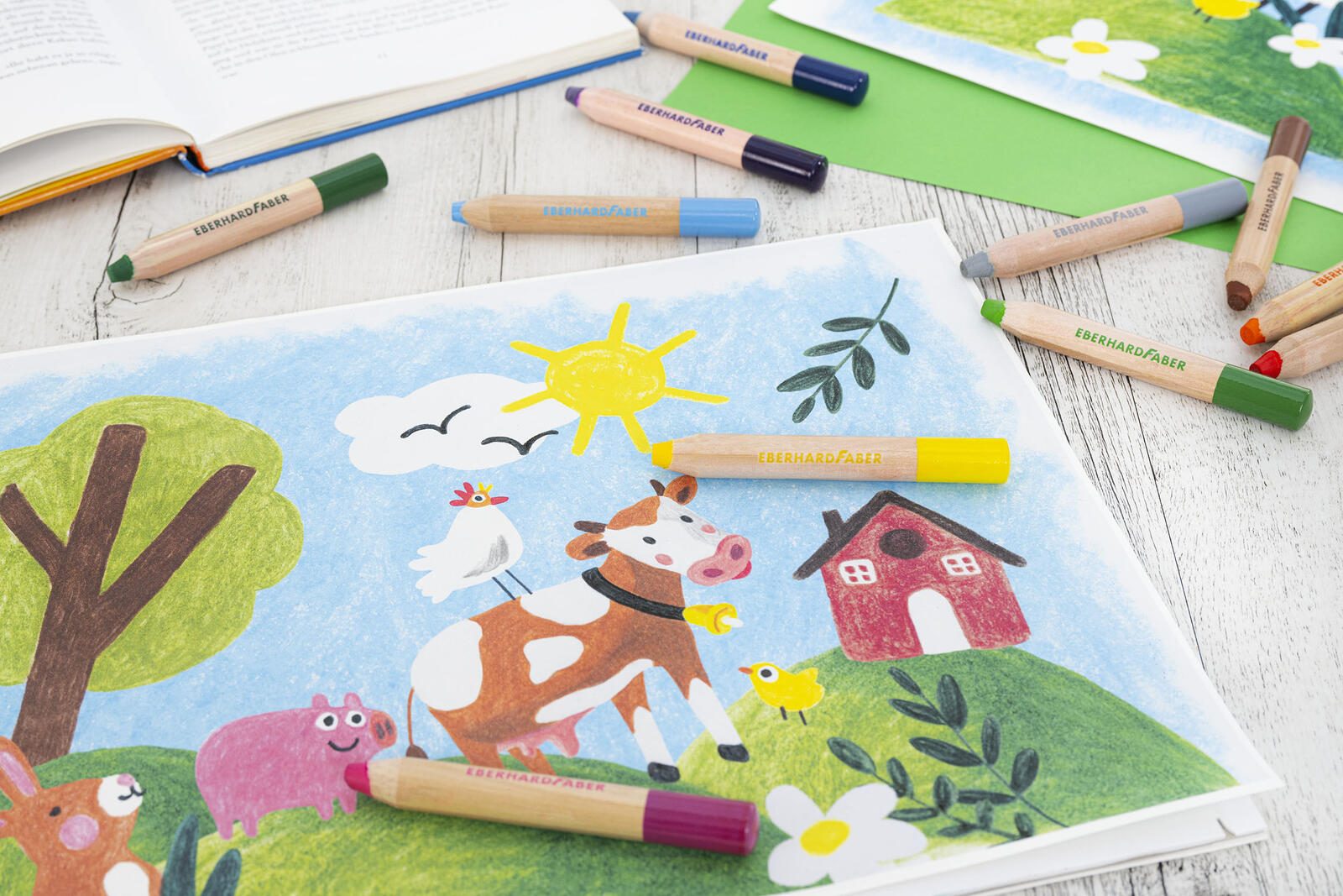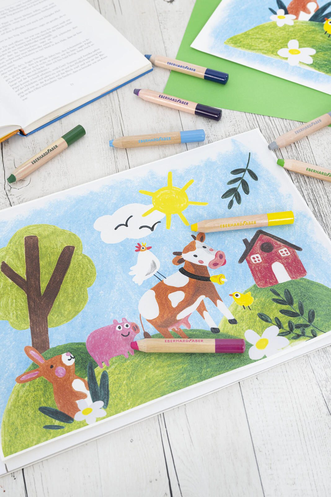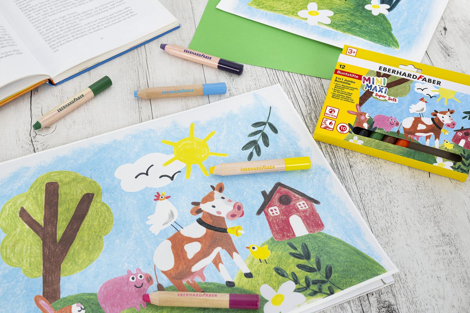 Die EBERHARD FABER Buntstifte in Mehrfarbig sind die ideale Wahl für kreative Köpfe, die Wert auf Qualität und Vielseitigkeit legen. Mit einem runden Schaft bieten diese Jumbo-Buntstifte nicht nur eine angenehme Handhabung, sondern auch eine hohe Minenstabilität und Bruchfestigkeit, die dir ein sorgenfreies Zeichnen und Malen ermöglicht. In der Packung sind 12 Stifte enthalten, die in lebendigen Farben wie Gelb, Orange, Rot, Pink, Lila, Hellblau, Dunkelblau, Hellgrün, Dunkelgrün, Braun, Grau und Schwarz erstrahlen. Diese breite Farbpalette eröffnet dir unzählige Möglichkeiten, deine Ideen und Fantasien zum Leben zu erwecken. Egal, ob du detaillierte Zeichnungen anfertigen oder einfach nur entspannende Farbspiele kreieren möchtest, diese Buntstifte sind perfekt für jede Gelegenheit. Die hohe Qualität der Mine sorgt dafür, dass die Farben intensiv und gleichmäßig aufgetragen werden. Du wirst die Bruchfestigkeit der Stifte zu schätzen wissen, besonders wenn du mit mehr Druck arbeitest oder die Stifte häufig transportierst. Das praktische Karton-Etui schützt die Stifte und macht sie leicht zu verstauen oder mitzunehmen, ideal für den Einsatz zu Hause, in der Schule oder unterwegs. Mit den EBERHARD FABER Buntstiften Mehrfarbig erhältst du nicht nur ein hochwertiges Produkt, sondern auch ein Werkzeug, das deine Kreativität unterstützt und fördert. Lass deiner Fantasie freien Lauf und genieße das Zeichnen und Malen mit diesen erstklassigen Buntstiften.Technische Daten