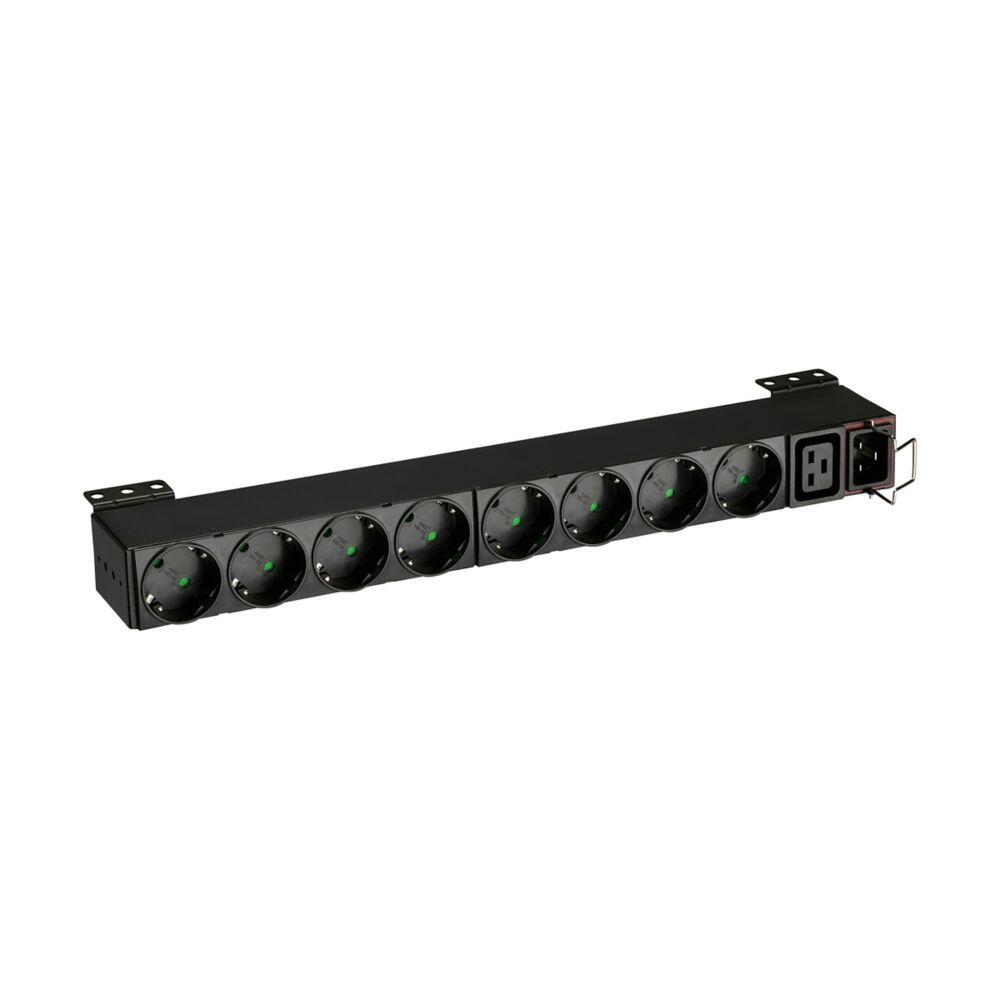 1HE, C20 Eingang, 4kW, 16A, 200-240 V, Ausgänge: 1x C19, 8x Schuko, DIN
