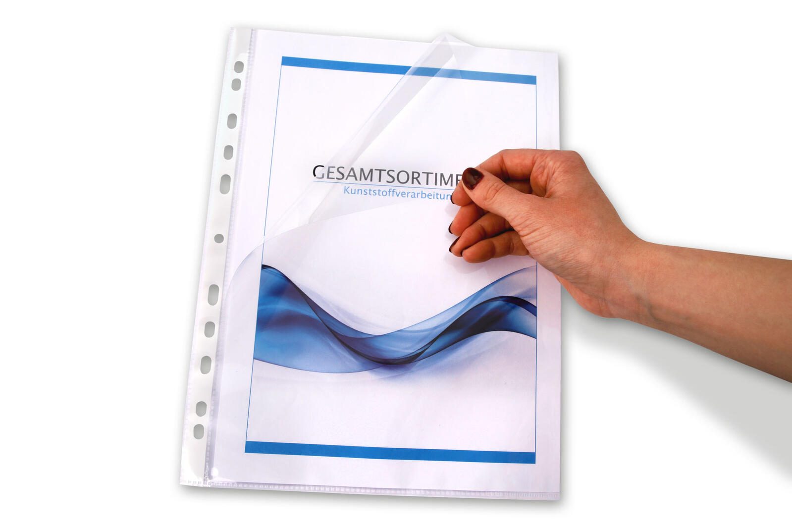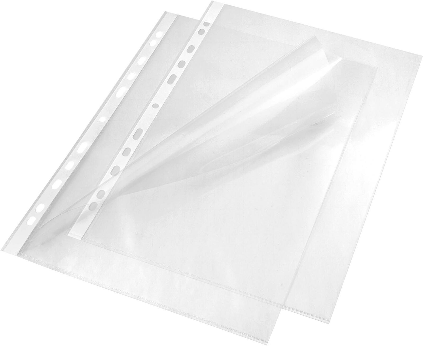 Die EICHNER Prospekthüllen DIN A4 0.1 mm glasklar bieten eine ideale Lösung zur sicheren Aufbewahrung und Präsentation deiner Dokumente. Diese hochwertigen Hüllen bestehen aus robustem Polypropylen (PP) und zeichnen sich durch ihre glasklare Farbe aus, die eine optimale Sicht auf die Inhalte ermöglicht. Mit einer Stärke von 0.1 mm sind sie sowohl stabil als auch flexibel, was sie perfekt für den täglichen Gebrauch macht. Die Vorderseite der Hüllen ist bis zum Verstärkungsstreifen ausgeführt, was zusätzlichen Schutz für deine Unterlagen bietet. Die Öffnung erfolgt oben und am Lochrand, wodurch das Einlegen und Entnehmen der Dokumente besonders einfach und komfortabel ist. Dank der Universal-Lochung kannst du die Prospekthüllen problemlos in Ordnern abheften, was eine übersichtliche Organisation deiner Unterlagen fördert. Mit einem Pack von 100 Stück bist du bestens ausgestattet, um deine Dokumente sicher und ordentlich zu verwahren. Diese Prospekthüllen sind dokumentenecht und kommen ohne Aufdruck, was dir die Möglichkeit gibt, deine Dokumente in einem professionellen und ansprechenden Format zu präsentieren. Egal, ob für den Büroalltag, die Schule oder zu Hause, die EICHNER Prospekthüllen sind die perfekte Wahl, um deine wichtigen Unterlagen zu schützen und gleichzeitig einen klaren Überblick zu behalten. Die glatte Oberfläche sorgt dafür, dass die Hüllen leicht zu handhaben sind und keine unerwünschten Fingerabdrücke hinterlassen. Setze auf Qualität und Funktionalität mit den EICHNER Prospekthüllen, die nicht nur praktisch sind, sondern auch deine Dokumente stilvoll zur Geltung bringen.Technische Daten