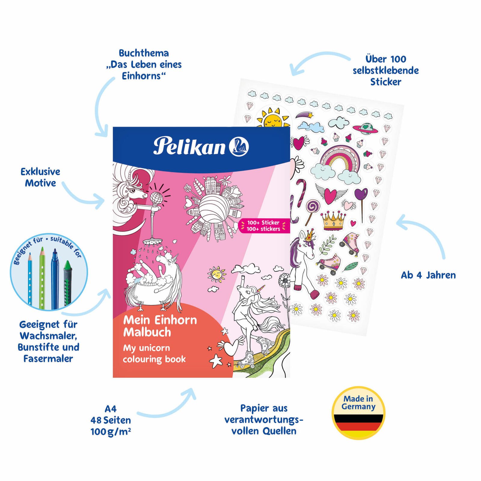 Pelikan Einhorn mit Sticker Malbuch