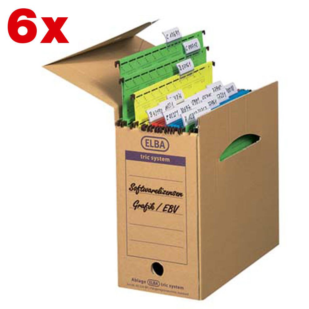 Die ELBA Archivboxen sind die ideale Lösung für die ordentliche und sichere Aufbewahrung deiner losen Dokumente. Mit einem großzügigen Fassungsvermögen von 16,2 Litern bieten sie ausreichend Platz für wichtige Unterlagen im DIN A4-Format. Die Außenmaße von 16,0 x 34,1 x 31,5 cm machen diese Archivboxen besonders handlich und leicht stapelbar, was dir hilft, deinen Arbeitsplatz oder dein Zuhause optimal zu organisieren. Die elegante braune Farbe der Boxen sorgt für eine ansprechende Optik, die sich harmonisch in jede Umgebung einfügt. Hergestellt aus robustem Karton, sind die ELBA Archivboxen sowohl stabil als auch umweltfreundlich. Dank des praktischen Grifflochs lassen sich die Boxen mühelos entnehmen und transportieren, was dir den Zugriff auf deine Dokumente erleichtert. Mit der Serienbezeichnung "tric system" sind diese Archivboxen speziell für die Aufbewahrung von losen Dokumenten konzipiert. Sie eignen sich hervorragend für das Büro, das Home Office oder für die private Nutzung. In einer Packung sind sechs Boxen enthalten, sodass du gleich mehrere Dokumente auf einmal sicher verstauen kannst. Die ELBA Archivboxen sind nicht nur funktional, sondern auch eine stilvolle Ergänzung für dein Büro oder deinen Wohnraum. Ihre durchdachte Konstruktion und das ansprechende Design machen sie zu einer praktischen Wahl für alle, die Wert auf Ordnung und Übersichtlichkeit legen. Vertraue auf die Qualität von ELBA und genieße die Vorteile einer effizienten Dokumentenaufbewahrung.Technische Daten