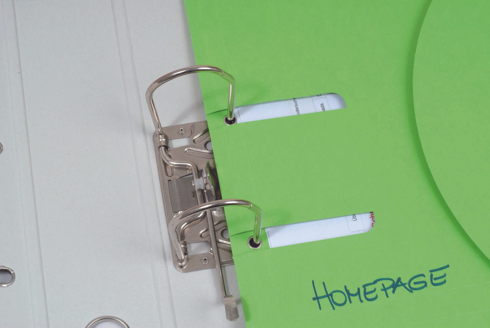 Die Besonderheit dieses Ösenhefters liegt darin, dass die Unterlagen ohne zu lochen abgelegt werden können. Statt einer Heftung wird ein Klettverschluss verwendet, der ein einfaches Öffnen und Schließen ermöglicht. Dadurch bleiben die Dokumente unversehrt und können bei Bedarf schnell entnommen oder ergänzt werden. Eine Heftung findet nicht statt, was den Umgang mit den Papieren erleichtert und Beschädigungen vermeidet.