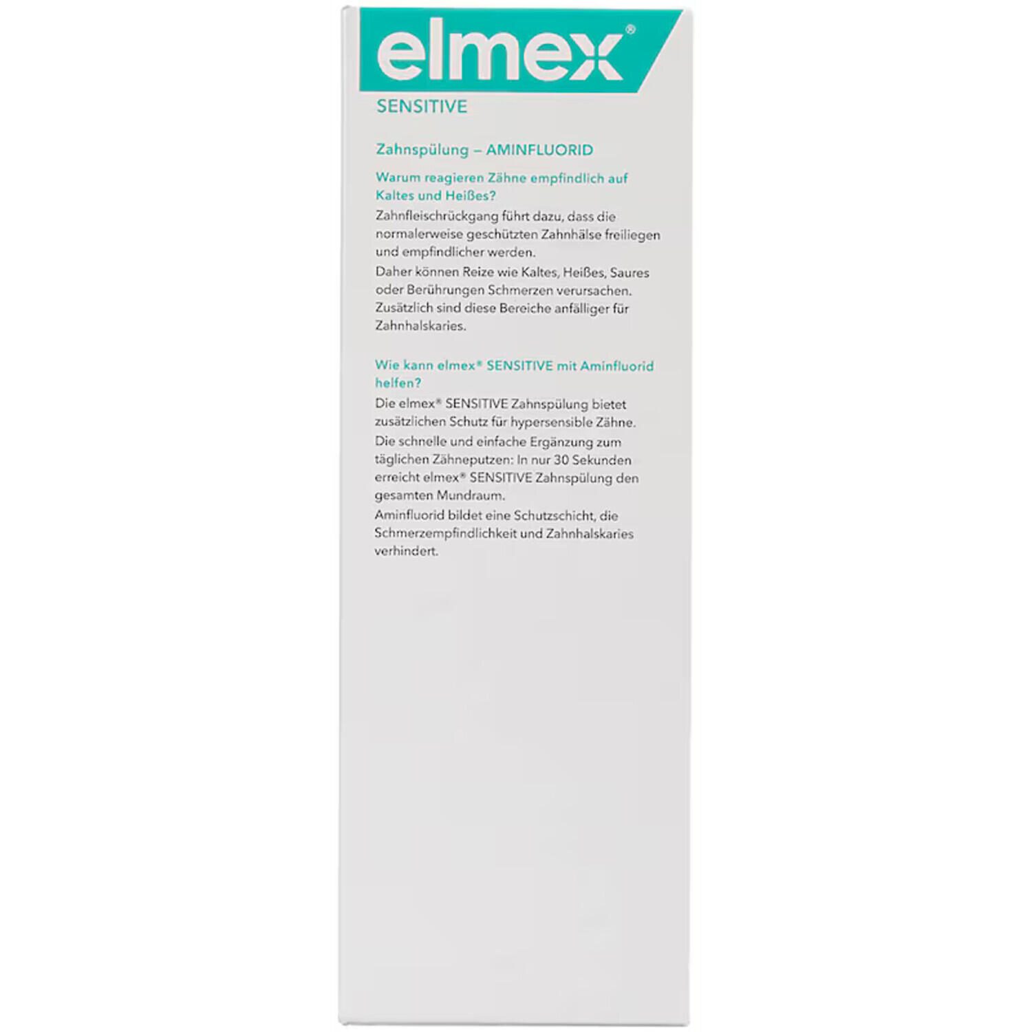 Die Formel der elmex SENSITIVE Mundspülung wirkt beruhigend und schützt das Zahnfleisch vor Reizungen. Sie ist optimal auf die Bedürfnisse sensibler Mundbereiche abgestimmt und trägt dazu bei, Entzündungen vorzubeugen und das Zahnfleisch gesund zu erhalten. Dabei sorgt die Mundspülung für ein frisches Mundgefühl und unterstützt die nachhaltige Reinigung, auch an schwer zugänglichen Stellen.