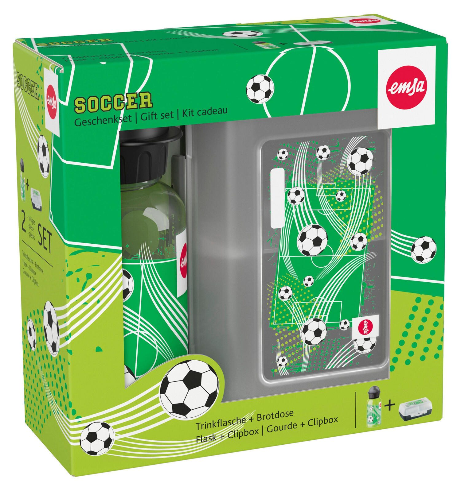 Unter der Serienbezeichnung "Fußball" begeistert dieses Set junge Sportfans. Hergestellt aus hochwertigem Polypropylen (PP) vom renommierten Hersteller Emsa, überzeugt die Trinkflasche und Brotdose sowohl in puncto Qualität als auch Design.