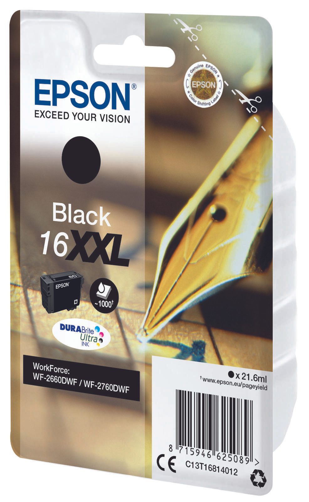Epson Original 16XXL Füller Druckerpatrone schwarz 1000 Seiten 21,6ml (C13T16814012)