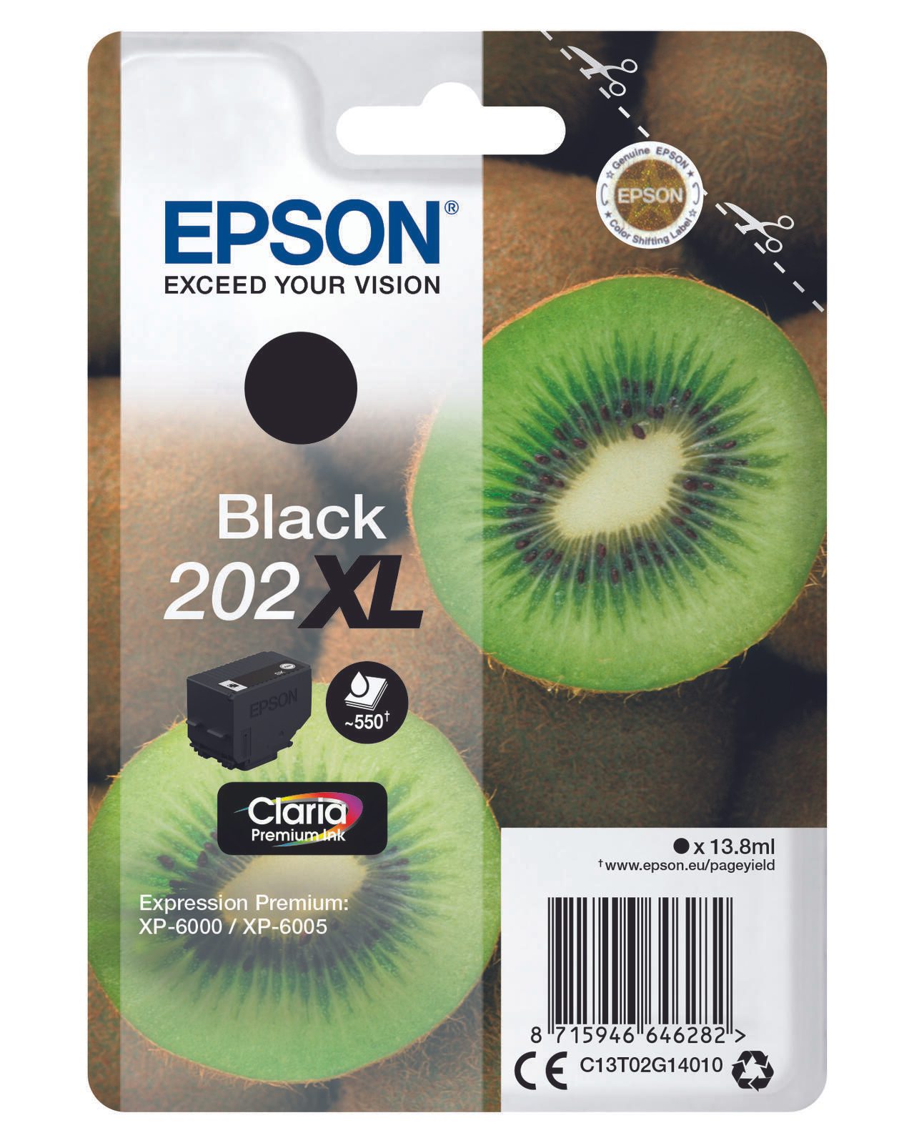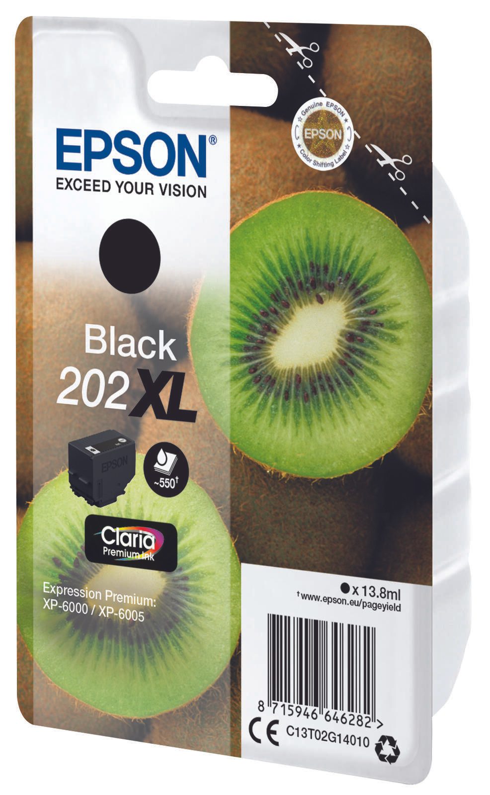 Epson Original 202XL Kiwi Druckerpatrone schwarz 550 Seiten 13,8ml (C13T02G14010)