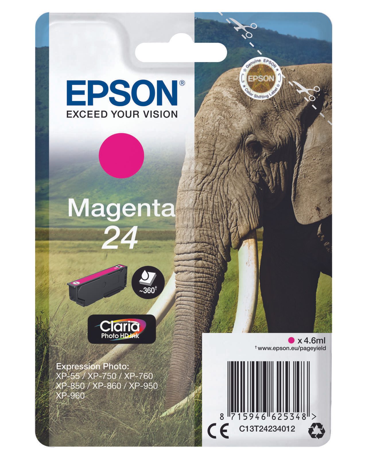 Epson Original 24 Elefant Druckerpatrone magenta 360 Seiten 4,6ml (C13T24234012)