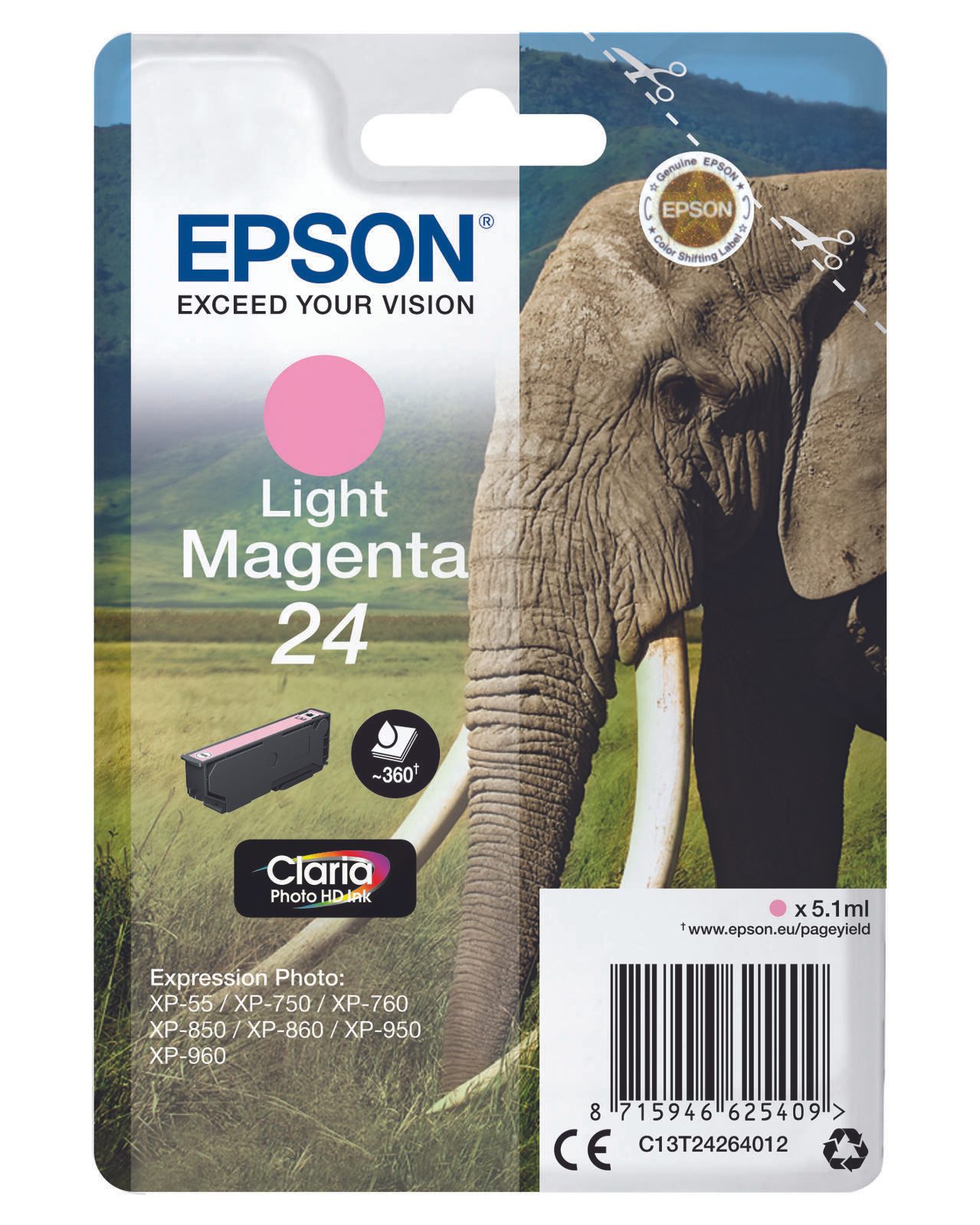Epson Original 24 Elefant Druckerpatrone magenta hell 360 Seiten 5,1ml (C13T24264012)