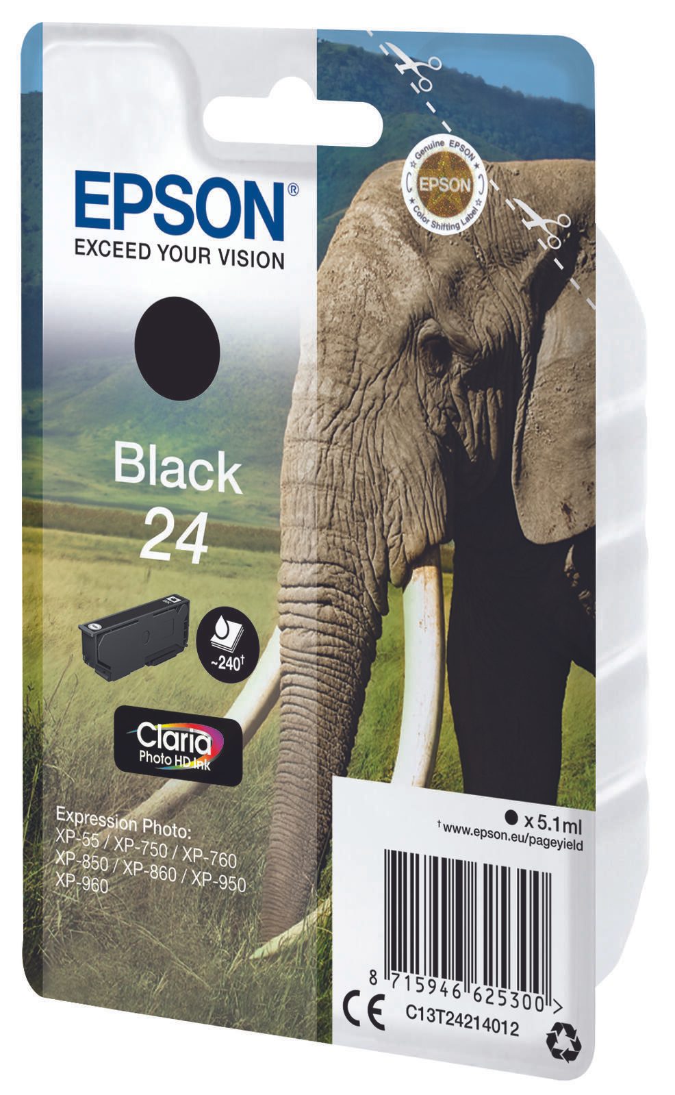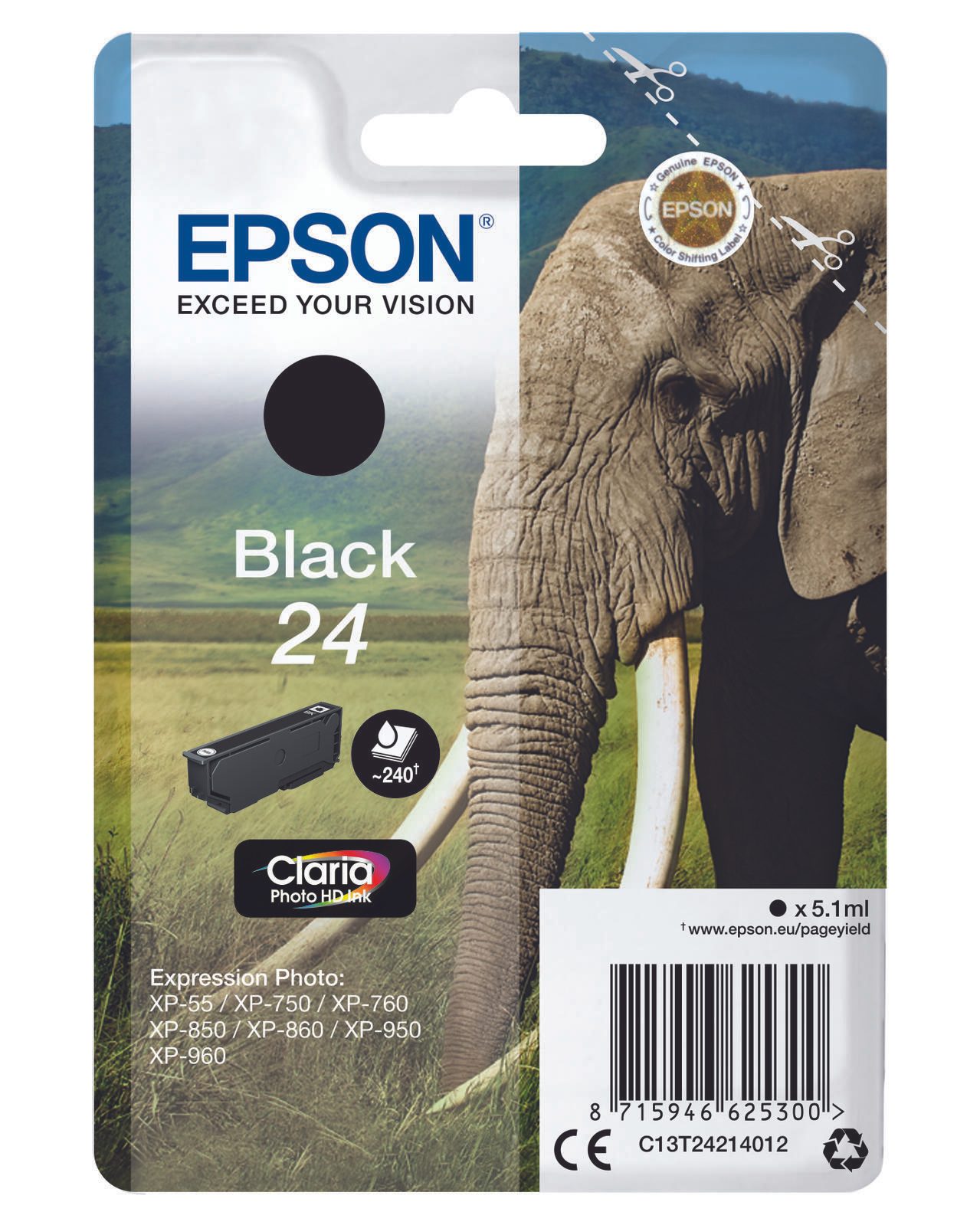 Epson Original 24 Elefant Druckerpatrone schwarz 240 Seiten 5,1ml (C13T24214012)