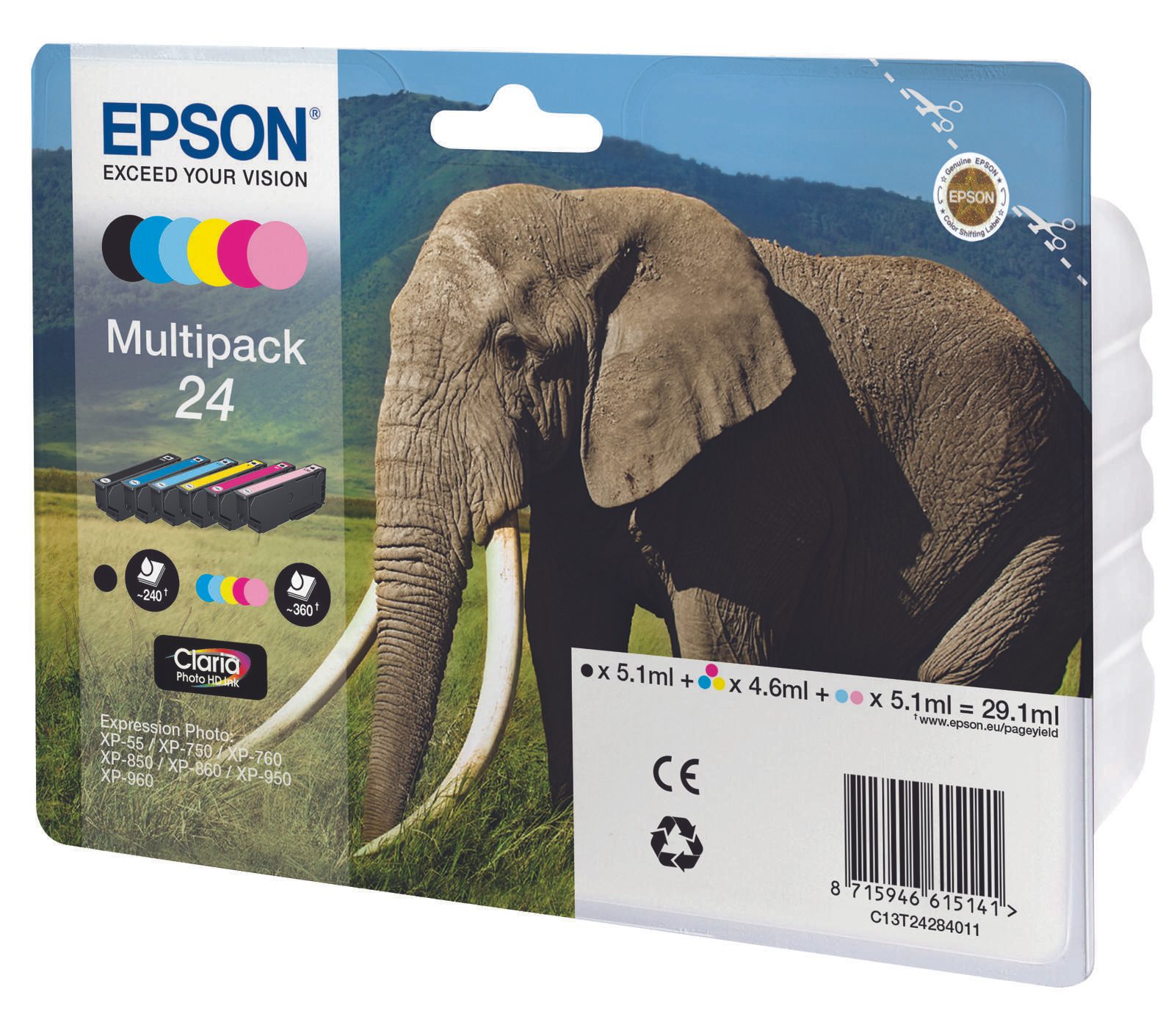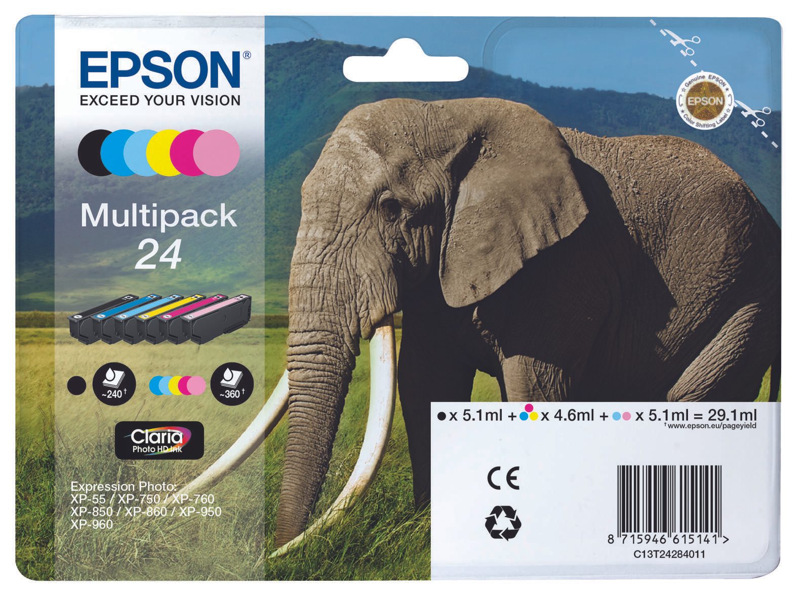 Epson Original 24 Elefant Druckerpatronen 6er Multipack BK/C/M/Y/LC/LM (C13T24284010)