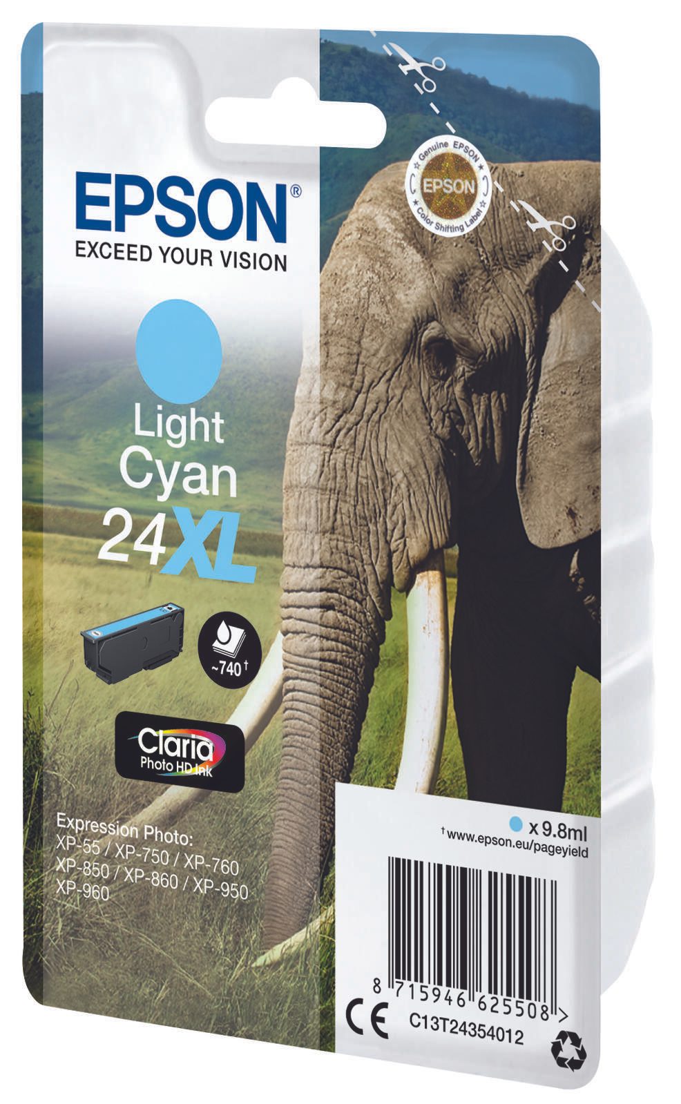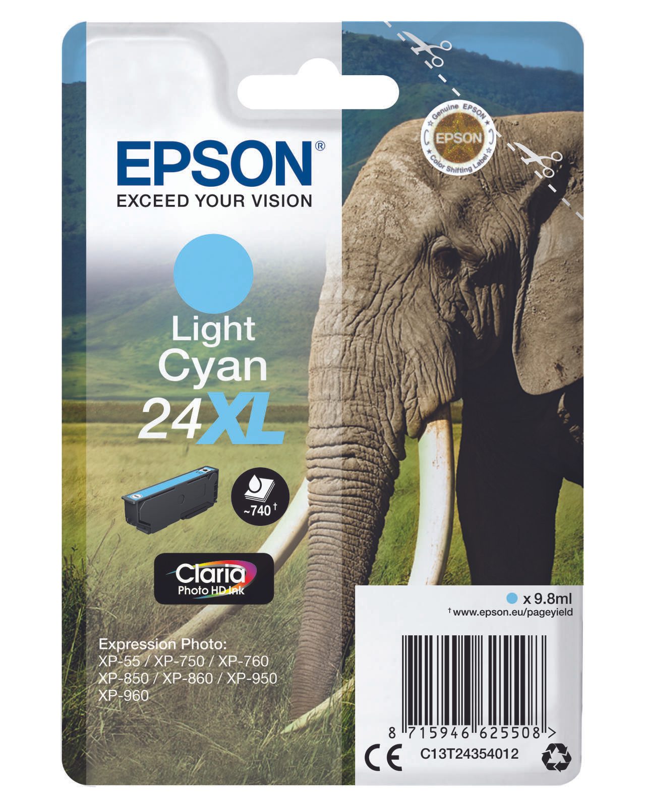 Epson Original 24XL Elefant Druckerpatrone cyan hell 740 Seiten 9,8ml (C13T24354012)